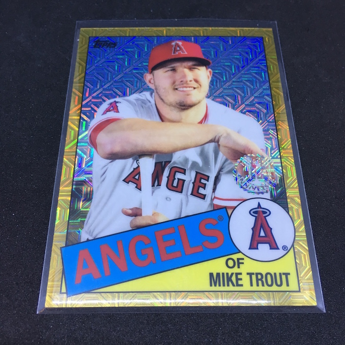 1985 Topps Chrome Gold Mojo Refractor (bonus pack) (1) – Mike Trout (/50)