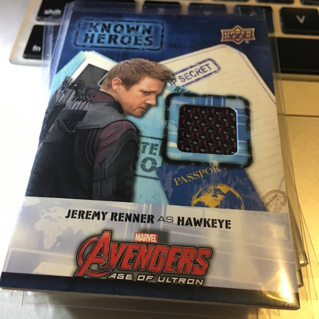 Known Heroes Avengers: Age of Ultron memorabilia (8) – Elizabeth Olsen as Wanda Maximoff (2), Robert Downey Jr. as Tony Stark, Jeremy Renner as Hawkeye (5)