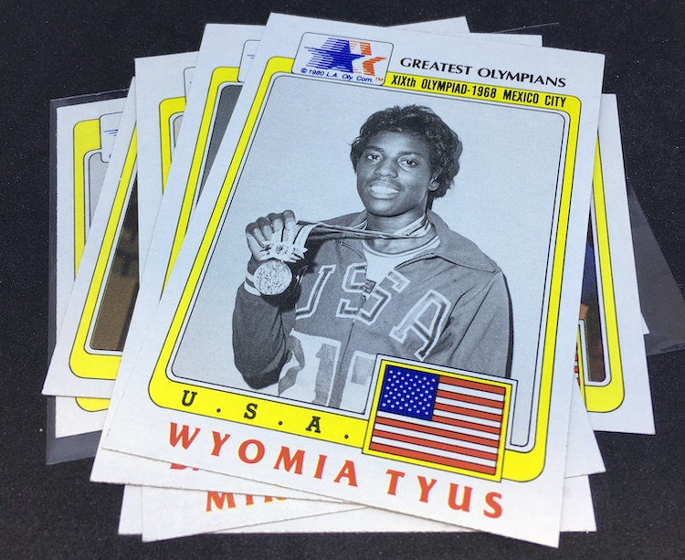 Notables in this pack: George Foreman (2), Jesse Owens, Dan Gable, Bill Bradley, Mike Eruzione, Babe Didrikson, Wyomia Tyus, Oscar Robertson, Floyd Patterson, Jerry West among others.