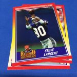What's Buzz-worthy: Yep, one more quick and cheap pack break for a #TBT post ... why? Would you want to open a box of this stuff? (That's why it's just some packs this time.) Ultimately, there's just not much here other than some stars in subset cards and I this one just wasn't as exciting as its Pro Set, Fleer and other companions at that time. Heck, at least those had insert cards -- these don't. ... The first Score set in 1989 was one of a few newcomers to the NFL ranks that helped usher in a new feel of football cards and a flood of even more companies on the gridiron -- and this second series of the second release from Score included some interesting touches you can see here in the subsets and rookies in college uniforms ... but it just wasn't as clean as the first one. One thing here ... there are Rookie Cards of players who were veterans but hadn't had cards before ... no RC logos needed, though, as the same definition of today was in play back then. ... I recently grabbed a mystery box of old football packs with some simple, Throwback Thursday-style retro Buzz Breaks of single packs in mind but it turned out to be a box of several packs from about five products in just a couple of years -- my prime NFL years, really, back in the day, but, overall, the box was a fail. Not much going on here -- and the wrappers that were baggies really protected nothing and these show it. Not much more to say here other than newer stuff is better.