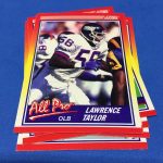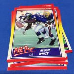 Notables on base cards – Joe Montana, Randall Cunningham, Steve Largent, Art Monk, Andre Reed, Lawrence Taylor, Reggie White, Bruce Matthews, Sterling Sharpe, Ted Hendricks, Earnest Byner, Doug Flutie