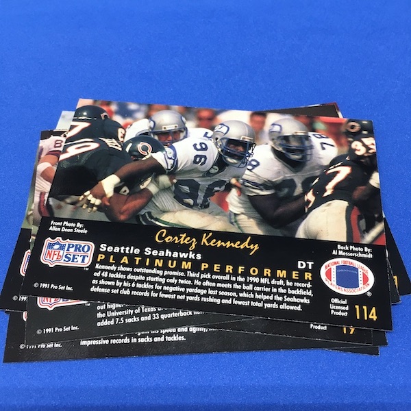The lot: 1991 Pro Set Platinum Series 1 football cards (four packs)