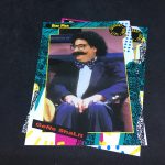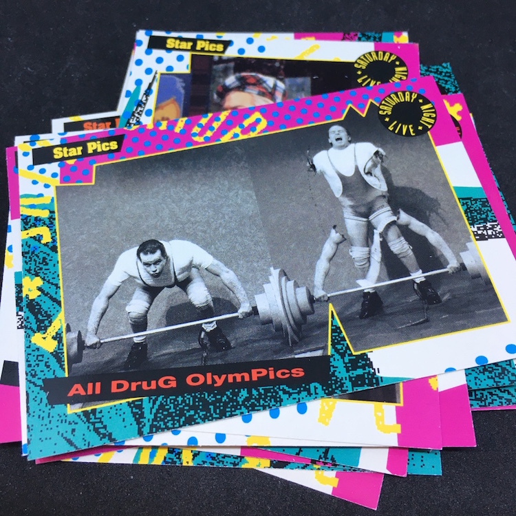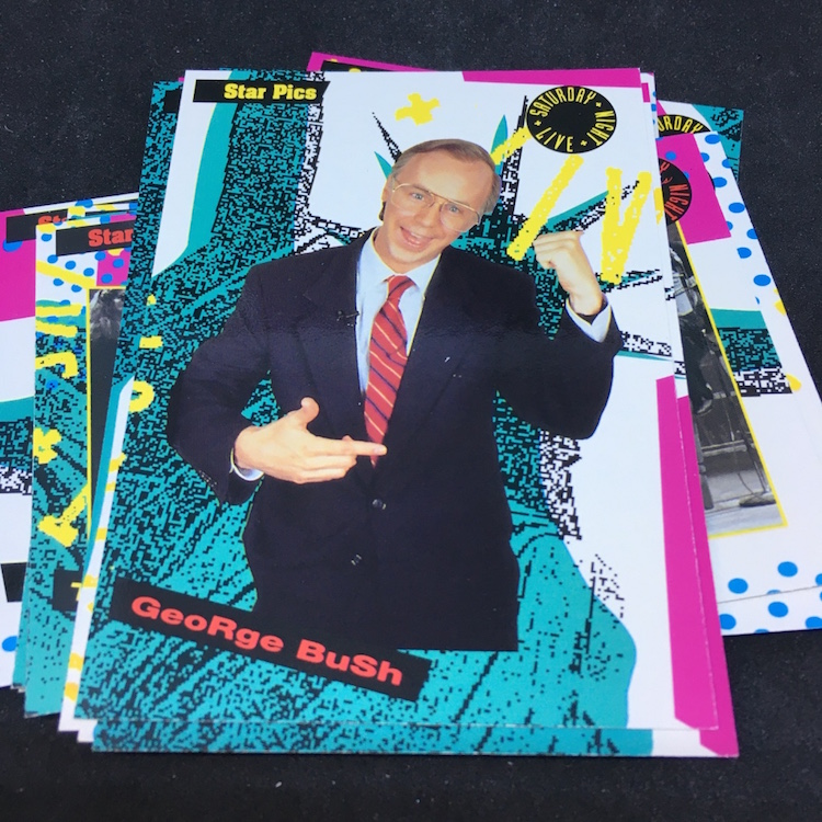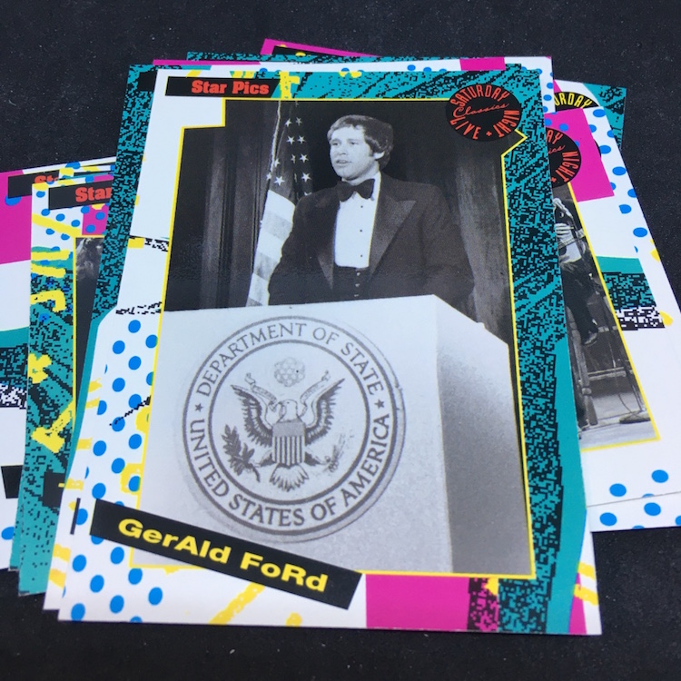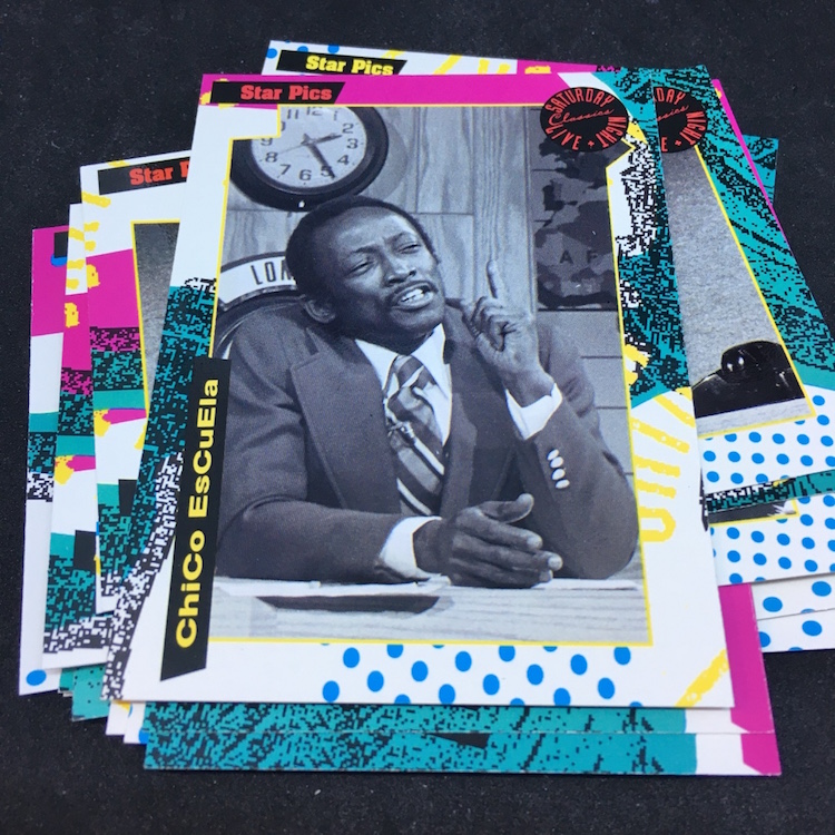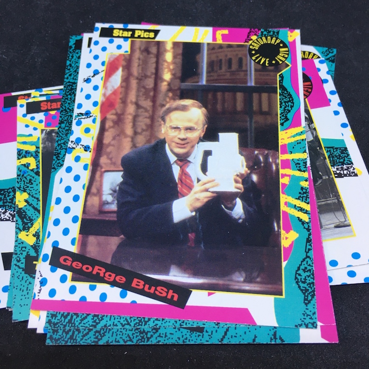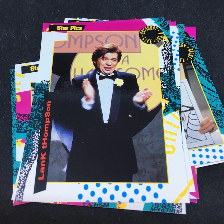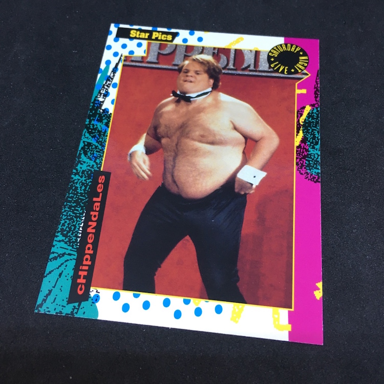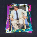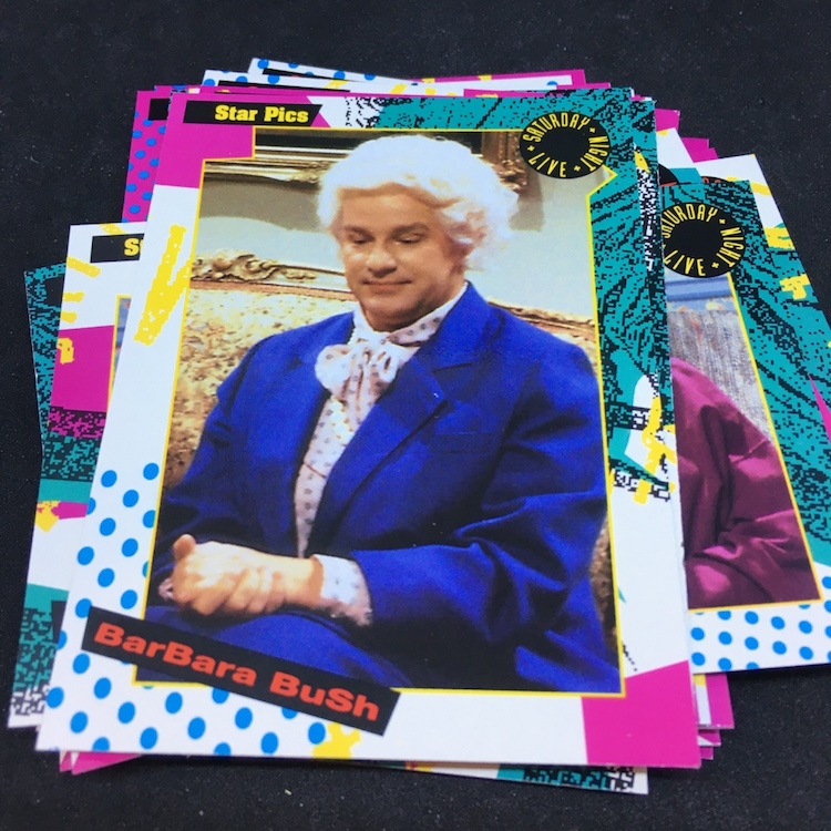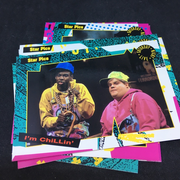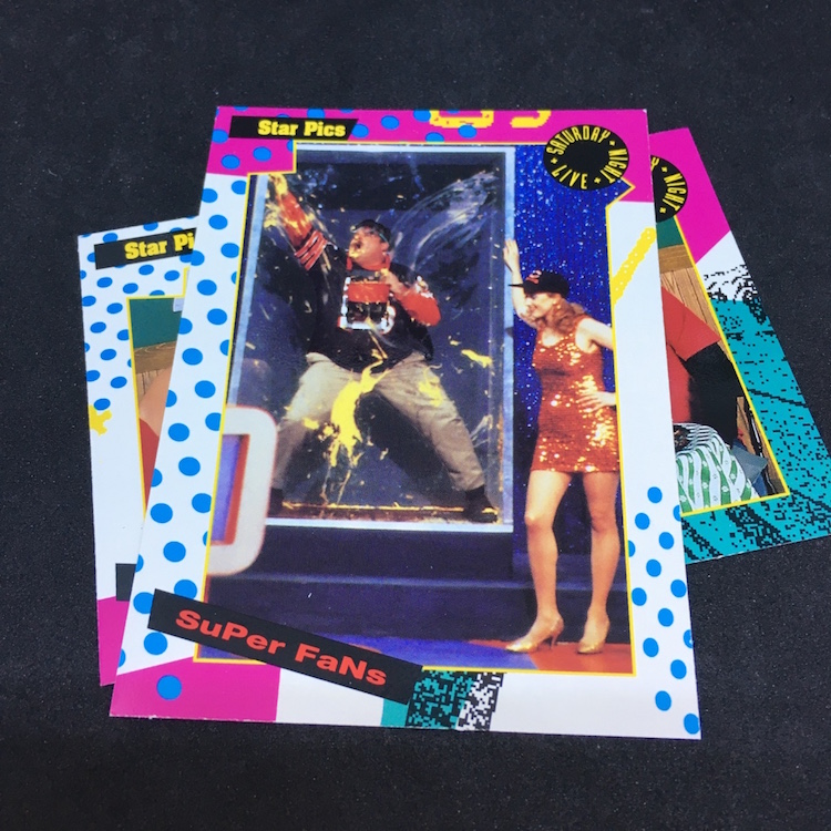 What's Buzz-worthy: There are reasons to rip into these boxes from nearly 30 years ago as there are immensely rare autographed cards to be found -- they're all signed on the backs of standard cards with a gold Star Pics foil sticker placed atop part of the auto. Signers in this one include Chris Farley, Al Franken, Phil Hartman, Mike Myers, Tim Meadows, Ellen Cleghorn, Kevin Nealon, Chris Rock, Adam Sandler, Rob Schneider, Julia Sweeney and even band leader G.E. Smith, so it's not a shabby list. With that come fakes so your best bet is to perhaps rip into some wax (with low expectations as they are rare). I did that here figuring, well, at least I'll get a set ... wrong. Welcome to 1990s collation as I came up one Toonces cards short of a set and four other cards eluded me for a second ... meanwhile I ended up with as many as five copies of some cards. No biggie as nothing here is super-pricey and ultimately I went here to maybe consider some cheap for-fun slabs ... though some singles here have A-listers shown or mock notables that could carry some value as raw cards here and there. See who you remember and can spot in the gallery. This series could be due for a modern-day set if the licensing money would line up for the series -- and there are countless possibilities between cast members, hosts and musical guests but it's probably not likely as all of those big names would mean big money to sign ... if they wanted to sign at all. This set comes at one of the peaks of the show if you ask me and it includes a lot of cards for those who were on the cast then as well as stars from before that time.
