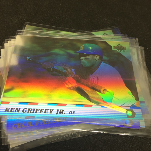 Notables on base cards – Ken Griffey Jr., Frank Thomas, Ozzie Smith, Ryne Sandberg, Nolan Ryan, Cal Ripken Jr., Kirby Puckett, Paul Molitor, Fred McGriff, Greg Maddux, Barry Larkin, Randy Johnson, Dennis Eckersley, Will Clark, Jose Canseco, George Brett, Barry Bonds, Wade Boggs, Jeff Bagwell and others ... see all in gallery below.