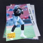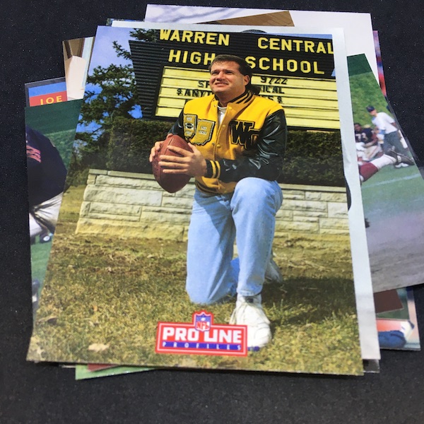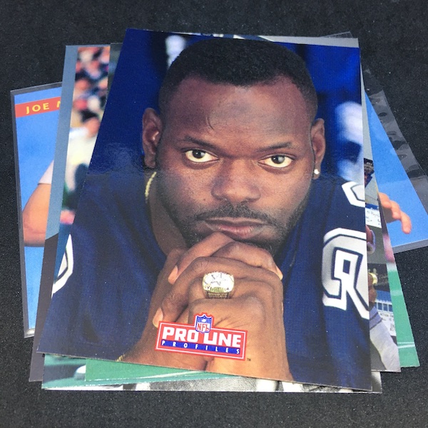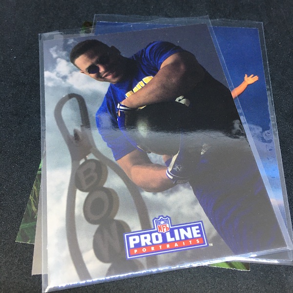 What's Buzz-worthy: I didn't land any retail this week so I opted for a Flashback Friday approach with this one ... a box from what I think might be one of the best eras for football cards -- the 1990s -- at least while many of the 1980s guys were still around and before it all became a lot more huck-it, chuck-it football all the time. Why rip this? A shot at certified autographs that could be very good paydays -- but they are not every box in this one like they were the year before and were in some years after. Autos are only a few times per case in this one and they are also tougher in jumbo boxes that have fewer packs but ultimately look the same at a glance. Thankfully, I got this one for less than $1 a pack which made it an easy try ... and there are some classic cards to be found in this one if you don't get an auto. (I wouldn't overpay for these boxes, though, either. If I were to go around $50 to $75 it would be for a year with guaranteed ink. ... As I noted in a past break of this one a few years ago, this set marks the first time that Pro Line had not been just portrait photography and it's still among the coolest brands of its time. You could argue that the 1991-93 Pro Line Portraits are among the most-creative sets ever -- unless you're talking value. Why? They made plenty of these cards back to meet the demands of the time and the added interest that came with certified autographs on a regular basis. (Their non-traditional approach isn't big with a lot of collectors, too.) The product is made up of three sets -- Pro Line Portraits and Pro Line Profiles, which is a nine-card story of a player's life that fits in a pages, are sets continuing the releases from the first two years and the Pro Line Live set that is the main one. There are some crazy/fun portraits here -- check 'em out.