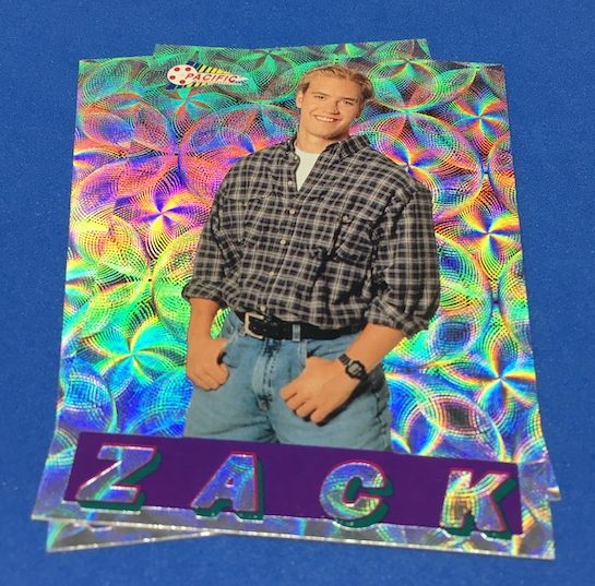 What's Buzz-worthy: For #TBT this time, I went with this pair of packs from a pretty rough past non-sports repack where this one was easily among the only "better" finds and these boxes were just a few bucks not that long ago ... widely available and dirt cheap, unlike the first series of Saved By The Bell cards Pacific made previously. (Those are tough finds in unopened form likely because the overall volume made likely wasn't massive.) How cheap? I landed a box of 36 packs for just $2 in 2o18 and broke it here. ... This show lasted less than a year with it toward the bottom of the 120 shows in the ratings that year, despite it being a follow-up of a long-running series with much (but not all) of the same cast. While the first set is just 110 cards with no extras in either packs or a factory set, this one is 110 cards, 10 Prisms and five promos. Since the first show's cards exist, very little here could be considered for the mystical non-sports "Rookie Card" that some like but this one does have a ton of scenes and portraits with card backs that are pretty forgettable. Ironically, I got two Prisms here and that's normally what you'd find in a whole box so that made this pair of packs strong. That's all the time I've got for this one today ... but if I ever track down some of the first series cards, you'll definitely see them here and I'd totally slab a Kelly Kapowski Rookie Card -- and others -- from that one.