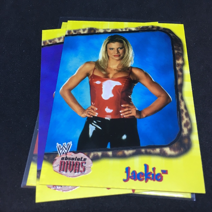 Notables on base cards: Trish Stratus, Jacqueline, Jackie Gayda, Dawn Marie, Stephanie McMahon, Ivory, Terri Runnels, Jazz, Stacy Keibler, Linda Miles, Torrie Wilson, Victoria, Brock Lesnar, Paul Heyman, Bubba Ray Dudley, D-Von Dudley, Steven Richards, Jeff Hardy, Kurt Angle, William Regal, Booker T, Triple H, Ric Flair, Hulk Hogan