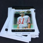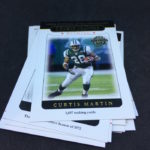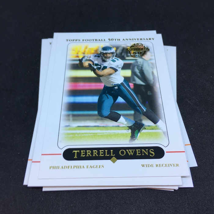 Notables on base cards: Tedy Bruschi, Marshall Faulk, Terrell Owens, Jake Scott, Curtis Martin, Dwight Clark, Antonio Gates