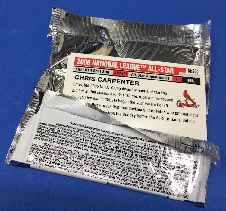 What's Buzz-worthy: I bought a boatload of this flagship's first series due to the chase of Alex Gordon's card that wasn't supposed to exist as well as some buybacks that added some cheap thrills in rack packs. The design here is clean but perhaps dull -- better than some, worse than some in its time -- and while this one (flagship and its update as a whole) does have its share of big chases with some exclusive sets showcasing elite names (Mickey Mantle, Barry Bonds, Alex Rodriguez) I'm not sure this one has aged all that well. This year was the first for the Rookie Card logo, too, but many of the players with the new addition on them aren't truly RCs here as they had previous years' Bowman cards. All four of my "RC" cards here are not actual Rookie Cards. There are only six actual rookies in this one with Mike Napoli, Jon Lester and James Shields the leaders of that pack. This particular series is jammed with highlights and subset cards to add names to almost a ridiculous degree and this pair of packs proves it. It's way out of balance. Some are fun, most are forgettable. However, all those key names do have parallels so there could be some hidden value here if you land a good name on one of them as we're coming up on the 20th anniversary of this one. Barry Bonds Home Run History is here -- with ink and Relics -- and Mantle is in there, too, along with All-Star patch cards, Relics and autos for the notables of the year. Ink here includes a small but potent lineup on those but the Rookie Debut autos that you're far more likely to find are weak now. Ian Kinsler, Lester and Napoli are lone highlights, if that. I did a jumbo box of this more recently and pulled a patch card so ridiculous you'd think it was fake coming from a box like this back then but that's certainly not the norm. This pair of packs is probably the norm -- so grab by the box if the price is modest and works for you if you need the retro rip. Otherwise, chase singles if they present themselves -- for reference, Bonds' ink is one in 42,400 packs.