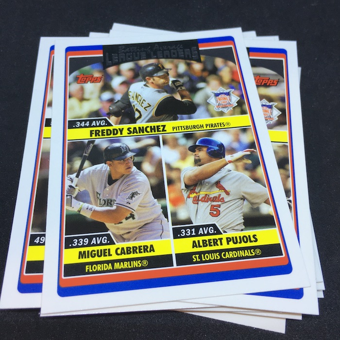 Notables on base cards – Greg Maddux, Cory Lidle, Derek Jeter, Ichiro Suzuki, David Ortiz, Ryan Howard, Miguel Cabrera, Mariano Rivera, Jim Thome, Albert Pujols, Tom Glavine, Frank Thomas, John Smoltz, Alex Rodriguez (and others big then but perhaps not now)