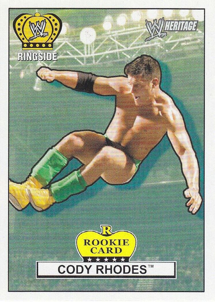 What's Buzz-worthy: Anybody remember this one from back in the day? Odds are you may not, but there's one sleeper card here that could end up being a card with some added demand among newer or casual collectors soon. This Ringside Edition blaster box was only sold at Walmart and they're pretty much nowhere to be found now -- and that key sleeper appears on the box -- a Ringside Rookies card of then-newcomer Cody Rhodes, a son of the son of a plumber, "The American Dream" Dusty Rhodes. He appears in the basic set, too, but that's easily found and trumped by Refractor versions of it in the Chromed edition the next year. So, technically, Rhodes' only two RCs are in this release -- and both are only found in this particular retail-only box, but not every time. (Yes, the Ringside card is an insert ... but RCs don't exist in wrestling to many, so I'm pulling a VKM and calling it an RC.) Either way, I didn't land one here. ... Why does Cody Rhodes matter? He's one of the faces of the new All Elite Wrestling promotion that will be taking the airwaves on TNT this fall as a direct competitor to the WWE. The Ringside packs are just one per box here and each includes one of four rookies and then four veterans from a 16-card set styled after the 1951 Topps Ringside boxing release that did include wrestlers. They are rare and asking prices for the established stars can be surprising on some sites out there. The basic Heritage set here is one that was around in hobby box form for a while -- so basically only the hits are rarer at this point -- but there are a number of veteran and younger stars included on 1980 and 1982 Topps designs as well as a subset of retired greats on the 1987 design. It's a solid little set and it's that little-ness that makes it a bland rip at retail. Thankfully this box did include a Relic -- boxes are rougher without them and they are not guaranteed at one in 24 packs. I hadn't thought about these boxes in years and I wasn't even sure if I landed them all for the Ringside cards back then (I think I bought until I completed the set) but I picked this one off when I saw the box. Spoiler alert: I'll be grading my Rhodes cards here at some point in the future as you can mark me down as feeling that AEW could be something big ... or at least something else on TV to check out. Will they be big money cards? Probably not, but they're far tougher to find than the standard cardboard -- and I think that makes a difference, especially if I land an elite grade.
