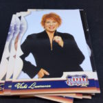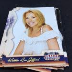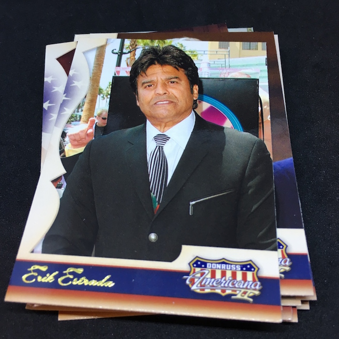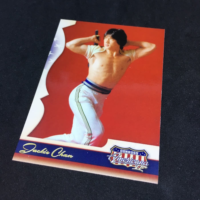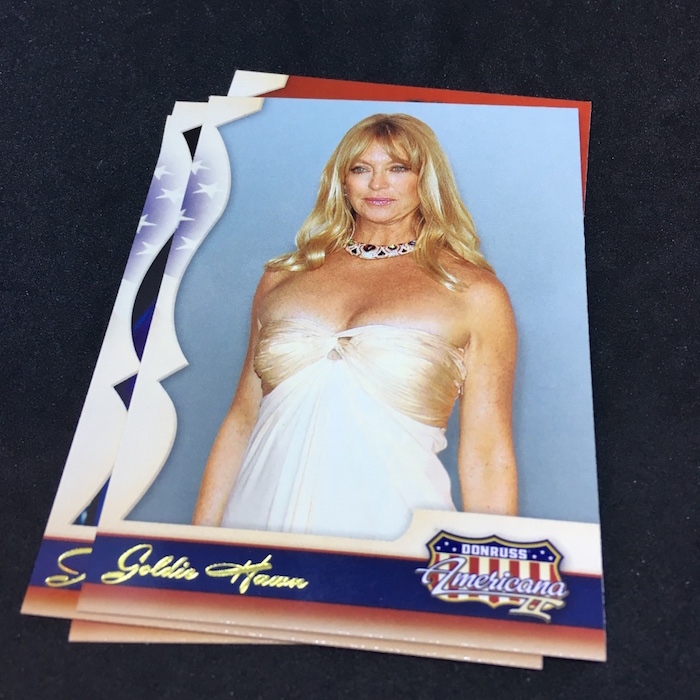 Notables on base cards – Jackie Chan, Willie Nelson, Jerry Lewis, Goldie Hawn, Quentin Tarantino, Peggy Fleming, Helen Slater, Regis Philbin, Natalie Raitano, Joyce DeWitt, Corey Feldman, Peter Mayhew, Kane Hodder, Martin Kove, Gary Coleman, Jane Russell, Brutus Beefcake, David Prowse, Stephen Toblowsky, Erik Estrada, Ed Asner, Julie Newmar, Martina Navratilova, Lee Meriweather, Mark Hamill, Willie Mays, Vicki Lawrence, George H.W. Bush, Jake LaMotta, Kathie Lee Gifford, Dan Fogler, Elijah Wood