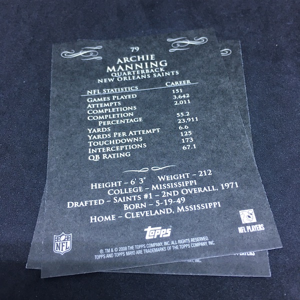 Base cards – Paul Gauguin, Archie Manning, Jerricho Cotchery, David Patten