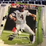 What's Buzz-worthy: Imagine walking into a chain store and finding a seven-year-old blaster box? That's been reality in some places as some of those retail distributors are clearing out old inventory for clearance bins. This box was one of those boxes and it feels like it could have been from a decade ago -- back when there were even checklists put into packs. The big names in the box were mostly Hall of Famers or retirees, while the rookies? Well, we got one of the biggest names but many of them just aren't around now -- or at least nowhere near collector radars. That's football for you. These cards are crisply designed with full-bleed printing and simple backs but they work. Some of the rookies of note that we didn't find here include Tim Tebow and Rob Gronkowski but the box still had a massive rookie presence. The insert presence? Not so impressive -- just three numbered parallels and two thick-stock inserts -- but you'll find a lot more if you rip a hobby box. If you like the looks of these cards, hit a hobby box -- you'll also get guaranteed ink and Relics there.