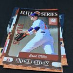 What's Buzz-worthy: Not all prospect crops age the same -- and this one, well, it's had some ups and downs and you can see some of it in this box. At times in the past, there were some big names here. Now? Yes and no. The base set is a simple 25 cards as this was an earlier Panini move back into baseball without MLB logos. The basic prospects list is one that hasn't aged well, especially with the best names held for autographs. You get at least six autos per box here -- and that's a good thing as was the Black November price I paid on this box -- and that gives you a good shot at some of the notable possible autos and their parallels. Among the ink of note here? Gerrit Cole, Trevor Bauer, Anthony Rendon, Francisco Lindor, Trevor Story, George Springer, Josh Bell, Brandon Nimmo, Jackie Bradley Jr. and a number of others who have had decent demand at times in the past. Some of the insert ink also can have some MLB names of note here -- Nick Castellanos, Manny Machado and Javier Baez perhaps the biggest. The very first pack delivered one of the big names without ink here -- a parallel of Rendon, while parallels helped me out here a tad. There can always be interest in rarer cards, too, no matter the name. Ultimately, though, the deep list of autos here will have a lot of names well-removed from their years on the field but the volume you get in a box and the parallels can make it worth the rip if you land a notable name or two or some parallels. If you just like a rip with some ink volume, this one is also worth a look with those good names worth holding. And if you land a top name on a rare parallel? It would pay for a few boxes.