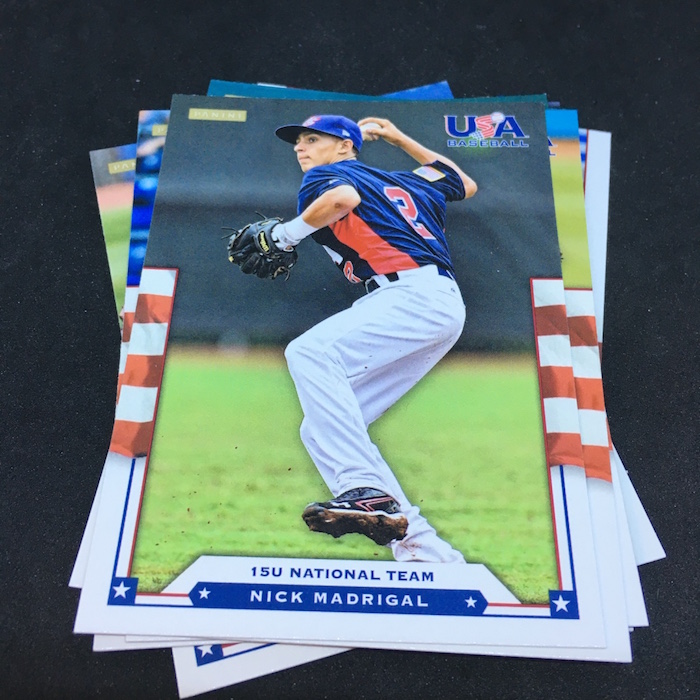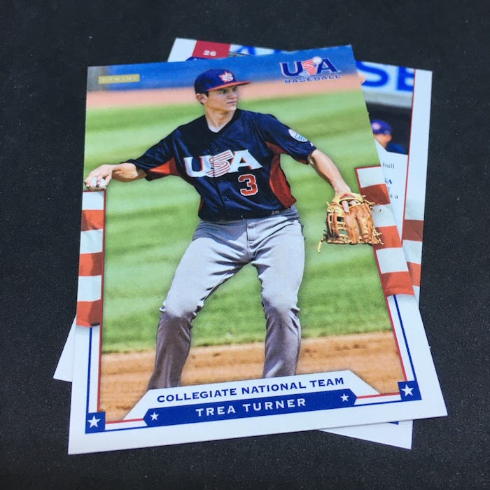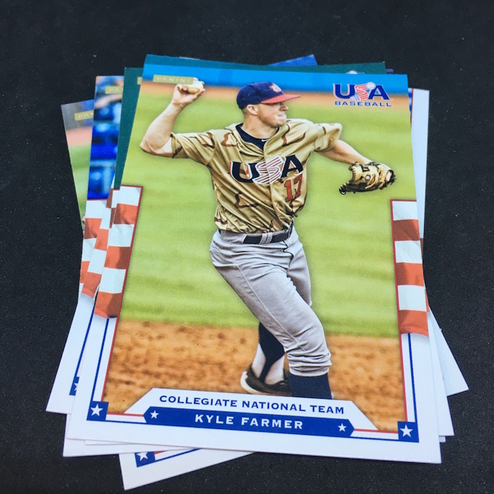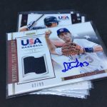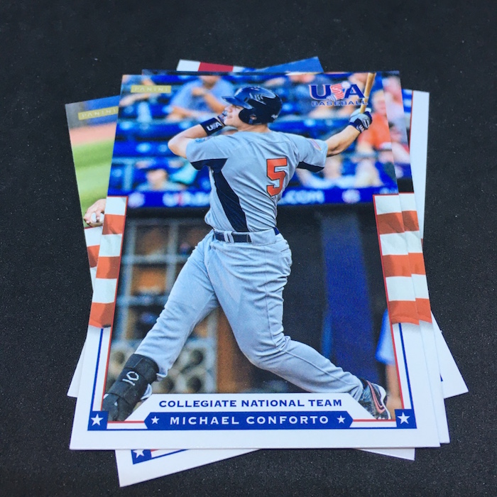 What's Buzz-worthy: The top names in the base set noted above can all be found among the hits here with easy stuff and more tougher finds all in play and Kris Bryant's ascension in MLB made this one among the tougher USA sets from the Panini years to be found -- and this one was the first. However, it's not a year that has aged all that well player-wise beyond those stars, so I'd not be ripping into this one unless it was cheaper. (This one was.) Finding ink from Cavan Biggio, Trea Turner, Kris Bryant, Michael Conforto or Nico Hoerner could make one of these boxes a win, but without them you can have some average results -- and boxes can include patches, ink variations and even lineup card autos ... not this time. The base set design here is a solid one -- one of my favorites -- but I ripped quite of a few of these in the past so those aren't what I'm ripping for here. While I like the hits of the current stuff I do admit I miss the set approach with a bunch of hits atop it. Perhaps boxes could exist where there are packs inside for each squad that include the team set and hits? Something like the rack sets but with more? It's a thought ... but all in all I'd rip USA Baseball stuff no matter what because come draft time there are a bunch of players who can sell well on cardboard or make for some strong breaks.