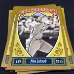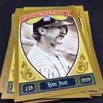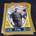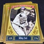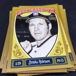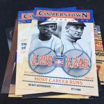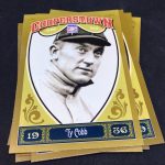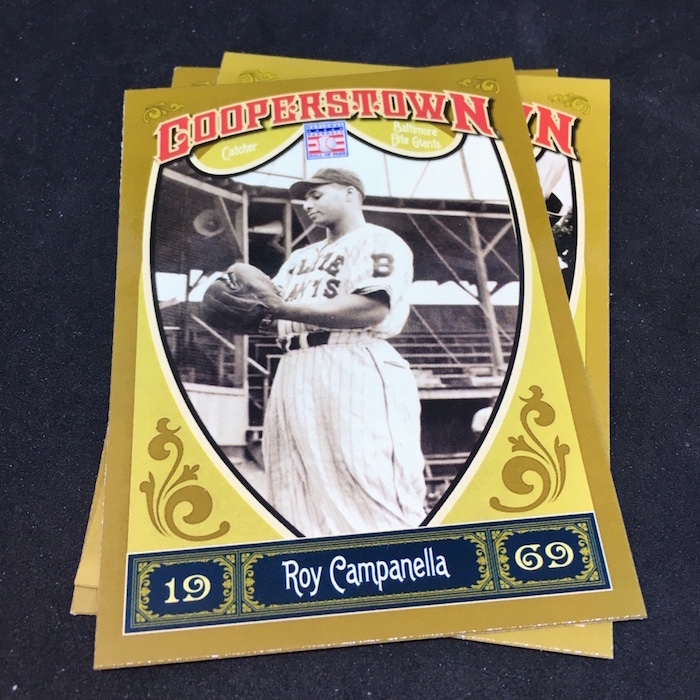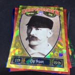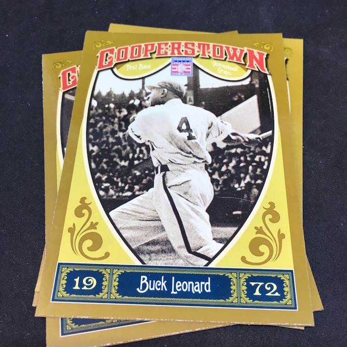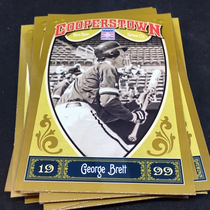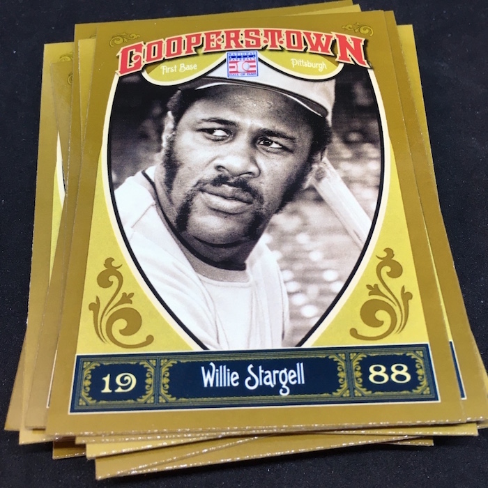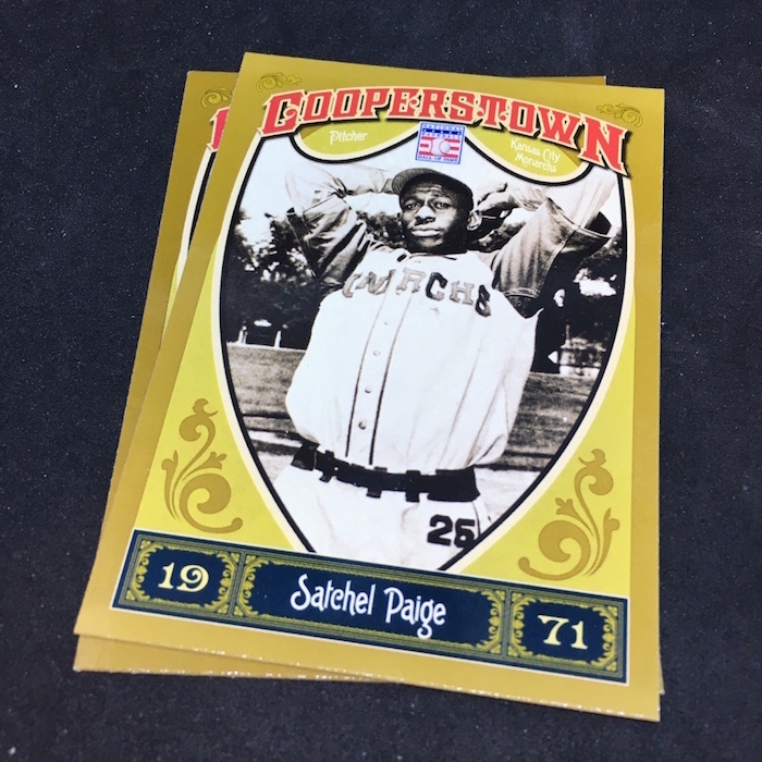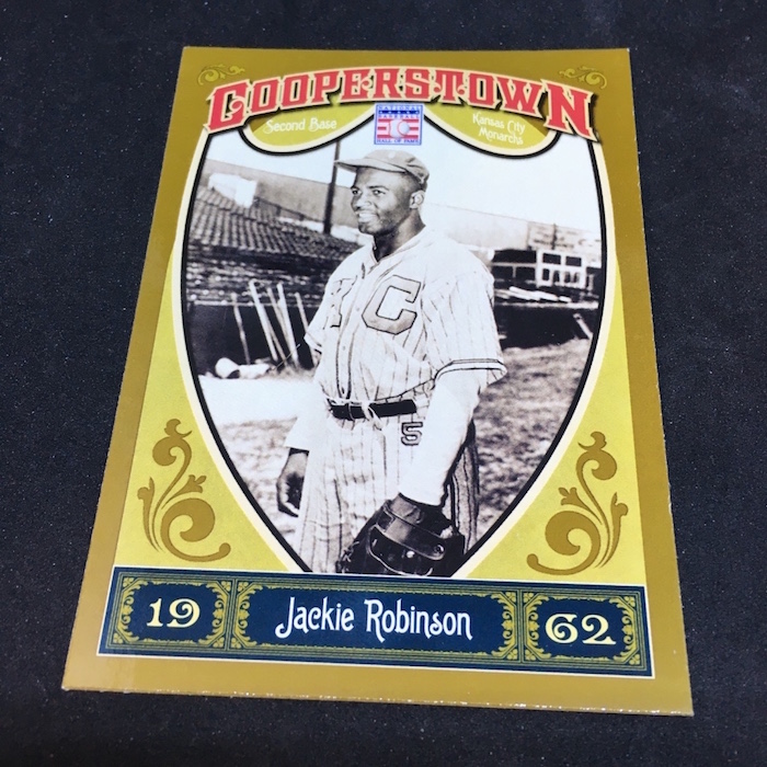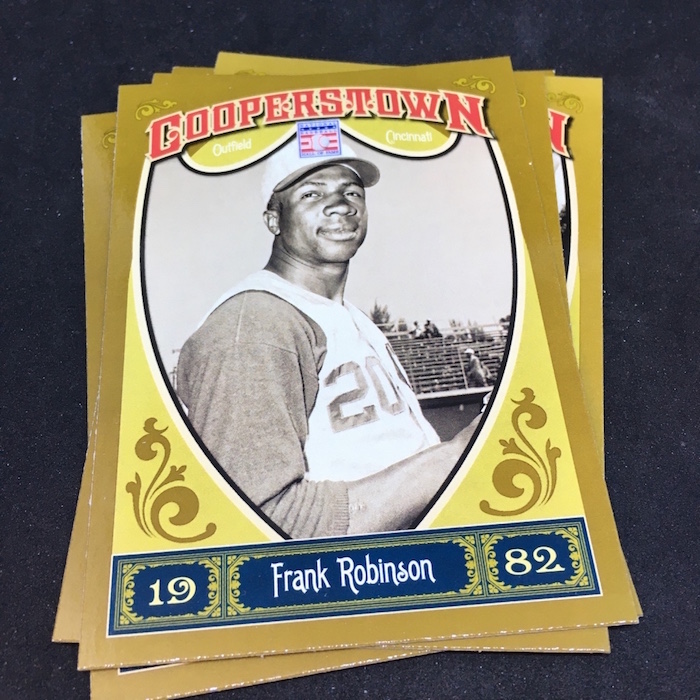 Notables on base cards: Jackie Robinson, Satchel Paige, Roy Campanella, Buck Leonard, Frank Robinson, Bob Gibson, Christy Mathewson, Lou Gehrig, Ty Cobb, Home Run Baker, Honus Wagner, Cy Young, Cap Anson, Warren Spahn, Stan Musial, Rogers Hornsby, Jimmie Foxx, Yogi Berra, Tris Speaker, Casey Stengel, Whitey Ford, Willie Stargell, George Brett, Mike Schmidt, Nolan Ryan, Robin Yount, Brooks Robinson and plenty more (all base cards are Hall of Famers)