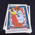 What’s Buzz-worthy: Here's one I picked up long ago and had stashed for a stretch without new boxes ... so here we go. It's also a favorite of mine from the past where I've busted sooooo many of these (and posted a few here in the past so look for more here on The Buzz if you want it). As said before, this base set is loaded with “some of the nation’s greatest athletes, entertainers and newsmakers from the Golden Age of America.” There are minis and there are Exhibit box-toppers that couldn’t be more different and then there are nods to food-issue sets, historic moments and pop culture. The ink found here overall is pretty solid and the roster of inserts was fun. Some of these boxes will include a third hit at times and many of the names you see above and in the gallery below are found as autographs and memorabilia cards, too. This one is key as the home of autographs for several cast members of The Bad News Bears -- only a couple of them are pricier -- and among the other signers are Bo Derek, Stan Lee, Jerry Lewis, Yogi Berra and Penny Marshall to name a few. Other autos can make these boxes a little hit and miss but the minis and memorabilia cards help these a tad, too. You won't get rich ripping these boxes, which have dried up a tad, but they are fun.