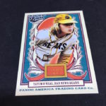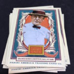 What’s Buzz-worthy: I went to this go-to cheap favorite of mine simply because I could -- hit that link up top where they are in stock for the first time in a seemingly long time -- and while this box wasn't one that included extra hits (it happens quite a bit here) it was one that included some of the key reasons why it's worth a look. The Bad News Bears are here in standard, mini and autograph form and my ink this time was from that motley crew. This base set is loaded with “some of the nation’s greatest athletes, entertainers and newsmakers from the Golden Age of America.” There are minis and there are Exhibit box-toppers that couldn’t be more different and then there are nods to food-issue sets, historic moments and pop culture. Among the signers are Bo Derek, Stan Lee, Jerry Lewis, Yogi Berra and Penny Marshall to name a few. Other autos can make these boxes a little hit and miss but the minis and memorabilia cards help these a tad. The White parallel here is a tougher find -- I've not pulled many -- and there are some tough memorabilia cards to be found here -- the Titanic and the Hindenburg -- and then simple ones like John Belushi. It's a cheap box that may not command big money every time but there is a ton of interesting stuff here.