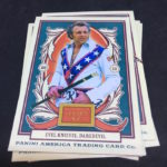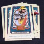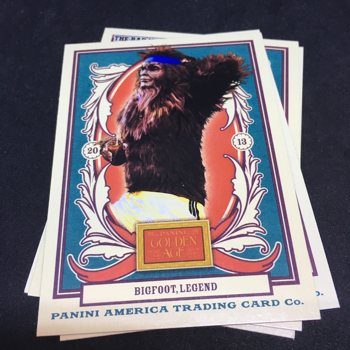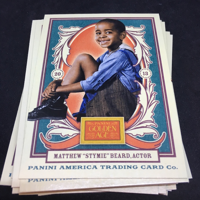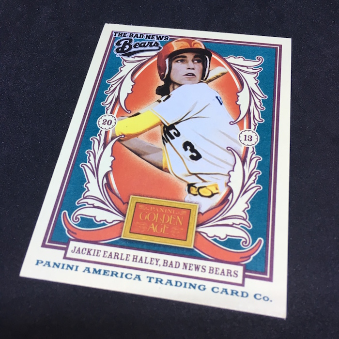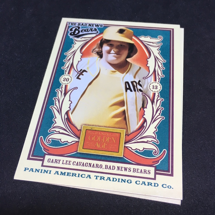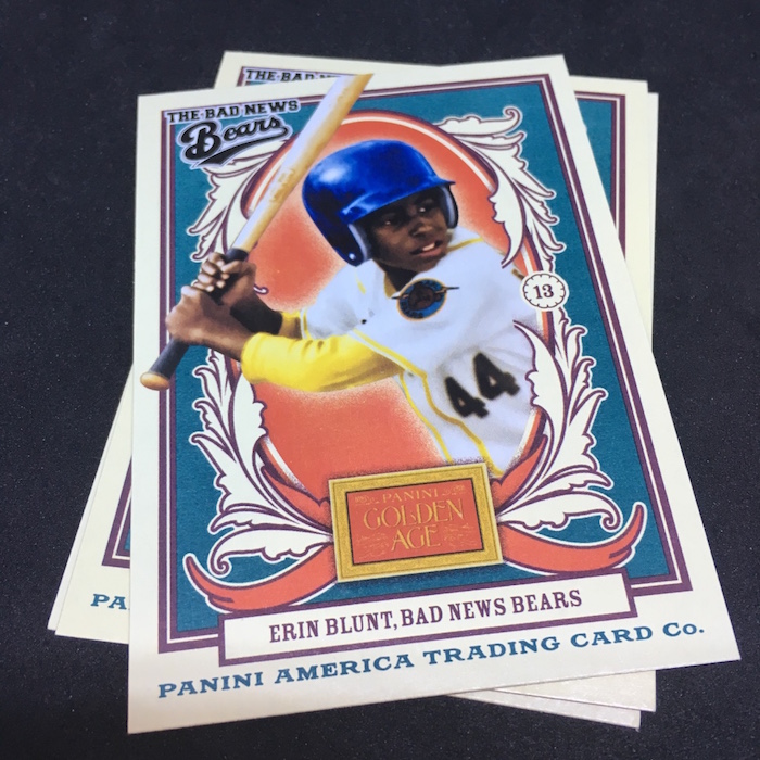 What’s Buzz-worthy: My third and final Golden Age break of the week (see 2012 here and see 2014 here) is the best of the releases from the three-year run if you ask me. It's one that -- don't tell the boss -- I probably have busted about 10 times through the four-plus years here on The Buzz. Why? It's pretty cheap and has a good autograph checklist -- the best of the three if you ask me -- and tons of variety and inserts. Poke around for more details on this one here but I'll offer a few quick positives ... The Bad News Bears are here in standard, mini and autograph form and there are minis and Exhibit box-toppers that couldn’t be more different and then there are nods to food-issue sets, historic moments and pop culture that make it all work. ... Signers here include a number of sports legends and others of note from the past, including Bo Derek, Stan Lee, Jerry Lewis, Henry Winkler, Barry Switzer, Sugar Ray Leonard, Curly Neal, Yogi Berra and Penny Marshall to name a few. Meanwhile, memorabilia cards have a lot of those key names mentioned in this one and plenty of others especially on the entertainment side -- John Belushi, Johnny Carson and Bob Denver (Gilligan!) for starters -- and even pieces of the Hindenburg. It's a cheap box that may not command big money every time, but there is a ton of interesting stuff here and it can sometimes include extra hits.