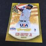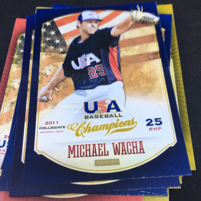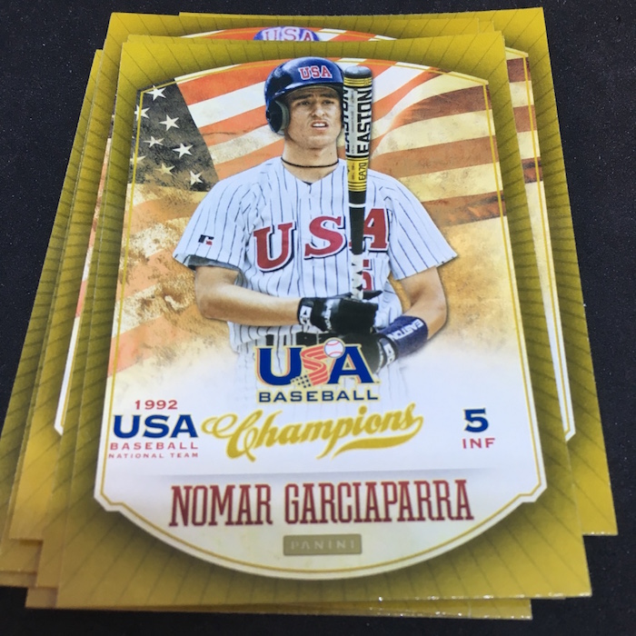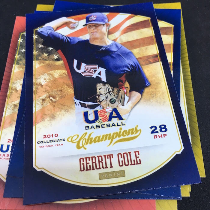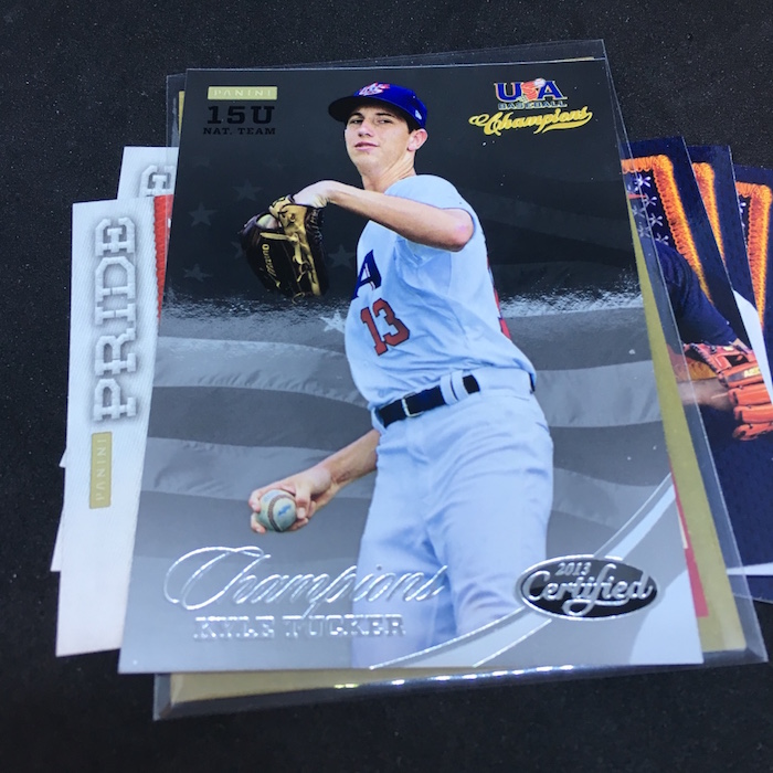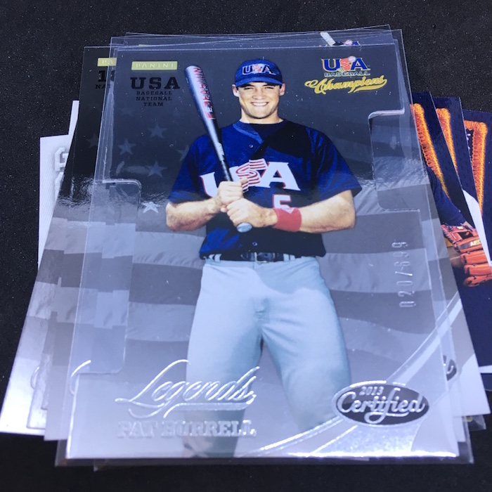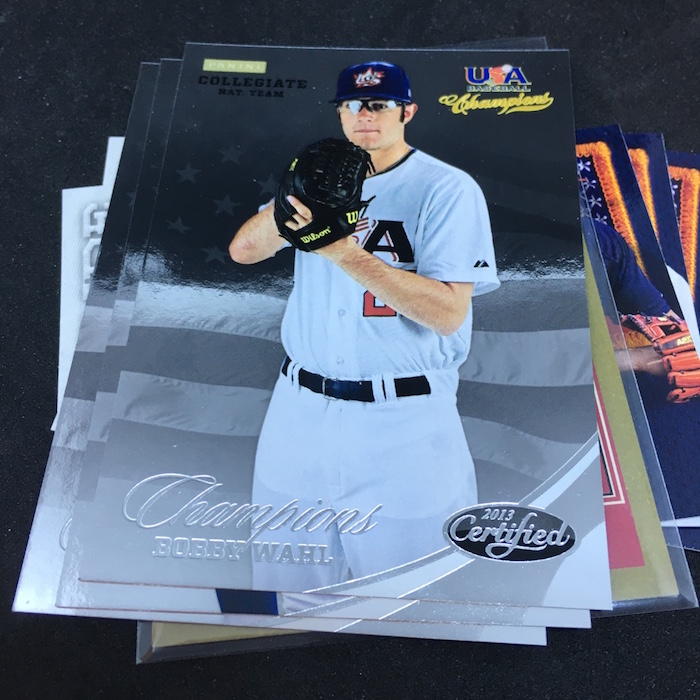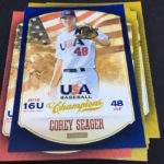 What's Buzz-worthy: The prospect crop here has some definite gems but overall it may not have aged that well -- but this is a release that also includes MLB legends who put in some time on USA Baseball squads and have autographs here and that makes this one a definite rip along with some of those top-tier prospects and the creative surprises that might be found in these boxes. You can find autographs for a number of big names, including Kris Bryant, Corey Seager, Mark McGwire, Roger Clemens and many others here and the price is solid for a six-hit box. ... The base set of this one is loaded with past greats in USA Baseball history and is complete at 123 cards -- Nos. 107 and 124 were not found in this box as they do not exist -- while the Certified cards are meant to be a short-print capper to those with the then-current players there. This was the first USA release to be found in wax packs and it includes plenty of high-end finds such as bat knobs, flag patches and other premium creations that you'll find more easily in low-end USA sets than in pro releases.