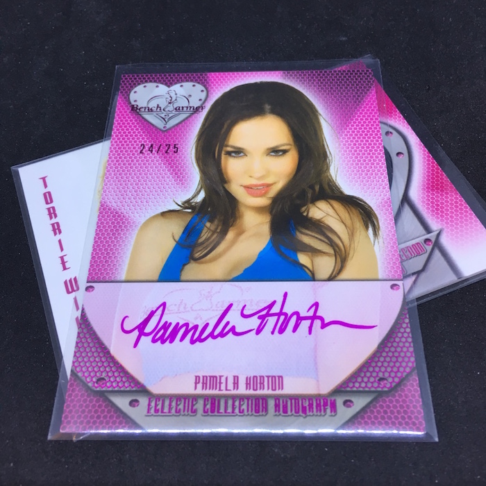 What's Buzz-worthy: With all of the BenchWarmer boxes in the big sale, I recently figured I'd watch some breaks to figure out what the various releases included ... but I couldn't settle on one. So then I wondered about a previously super-cheap go-to box -- this one -- that delivers big volume and big potential as it's a new pack of hits and promos and then a boatload of past packs from various releases all in one spot. These boxes? Well, they're nowhere near as cheap as they used to be -- two or three times as much out there -- but I grabbed one to see how it might go ... and to see if it was as comfortable of a break at a higher price. In this case, a good box, I give that thought a maybe. The Torrie Wilson has recently sold for $15 or so lately -- seems low as mem cards, which are one per box here, used to be higher -- and the Sara Underwood card is around $25 or so as she's a notable name to be found here. All in all, it wasn't a bad break but I've had as many as 18 hits pop out of these boxes and some claim to have found more ... the packs in the box can be streaky. ... As said previously, check out the list of just the base card notables found here and you should know many of them if you've turned on a TV in the last 20 years. There are models, wrestlers, TV hosts, WAGs, Internet stars, reality show notables and even a former aspiring NASCAR driver in there -- and that's a tiny fraction of the names found in these boxes, which are essentially a repack with 60 past packs along with a new cards made specifically for this release. (The guaranteed minimum here is eight hits if you go hitless in the other packs.) BenchWarmer has been around since the early 1990s and the explosion of autographs since then has really helped collectors find ink from names from around the pop culture world. These boxes include a number of early packs that don't pack a lot of hits and showcase how times have changed fashion-wise, but the rest of the packs include enough variety that things can add up fast. It's a fun rip as you never know what -- or who -- those past packs might include. ... That said, at the present prices in the big sale I'd probably do a do-over on my other box of this one to post here in the future and opt for the second series of Eclectic that's just some singles and hits, no packs. Autographs are the name of the game with this brand -- some good names can be found and the regulars in these sets who many people might not know have their collectors, too. Plus, the hit volume is generally pretty good and right now with all of the options out there across the collecting spectrum these, for me, have a little more energy than a box with an auto and a mem of some NFL rookie or guy who might not even be on a roster. It's good to have some variety in your autograph collection and these add to that for me.