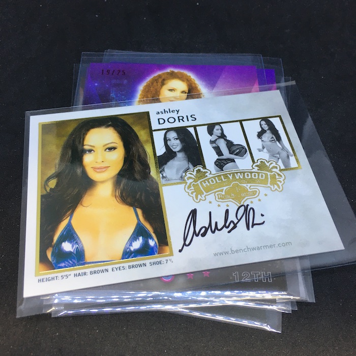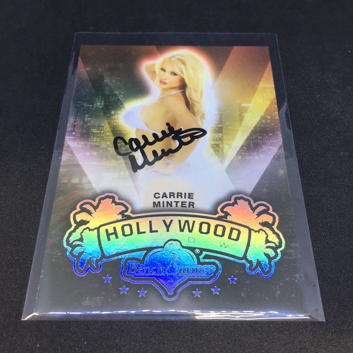 What's Buzz-worthy: This Black November wave box is one I haven't opened before and since it's mostly hits I figured I'd try it. This one included more hits than it was supposed to have cards with two of the biggest cards -- the Kiss Card and the inscription card -- atop the two stacks in the tray here. The names here definitely aren't the biggest beyond some Playboy appearances. There are cards to be found here from women with TV and movie roles (some here, too) but not the biggest this time. The base set, but not necessarily the autos includes names like Sara Underwood, Carmen Electra, Torrie Wilson and others. It's not a lacking lineup but it's a very wide one so you don't see the scope of what's possible here easily in one box. There are dual-auto and triple-auto cards, autographed memorabilia cards and various autos that you can collect to spell out "HOLLYWOOD" -- it's simple and mostly hits and that helps the value of the base cards and offering up the ink for more names. The roster of signers is also very deep and while it may not include some of the biggest names found in other past releases I think that depth can help with signers not seen in other boxes. While I wouldn't mind finding more base cards -- these are super-thick deluxe cards -- the rest of the package is very solid. If they last the Black November wave or drop, I may dabble here more -- just to add a variety of autos to my stash without breaking the bank.