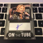 What's Buzz-worthy: As said in a previous break of this, Panini America's most-recent edition of Americana is a fun bargain rip these days at a fraction of its original price ($25 for this box vs. $100 or more upon release). If you're a regular reader of The Buzz, you'll know I've busted a few of these but this one over-delivered on the ink (three instead of two) and did include one of the things I aim to avoid -- a reality TV auto (Smiley). The other two? Solid music additions to the overall auto collection with Run-DMC's Rev and Mötley Crüe's lead singer, though Neil's auto is a very minimalist symbol best not on stickers and the Run card shows how cards in this release can often be found with seepage when ink hits the edge of the sticker. But for the price? I'm OK with it -- nobody's perfect when signing. ... The checklist of this one has some big ink -- anyone on a base card also has an auto -- though the basic set design and its auto parallels aren't the flashiest. (The design is modern and clean but a dull gray but stronger than the 2011 release but arguably not as good as earlier ones. The parallels really shine here.) The autograph lineup leans toward today -- much more so than previous Americana releases -- and the prices on the singles aren't huge but that makes them all a tad more collectable. If you can find hobby boxes cheap, it's definitely worth the rip just to add some variety to your autograph collection.