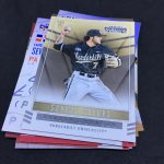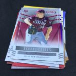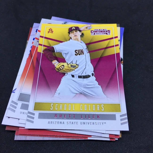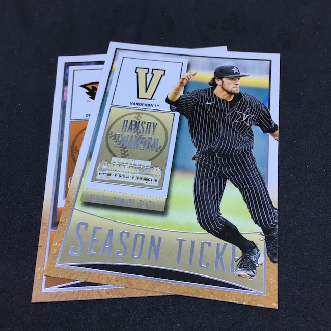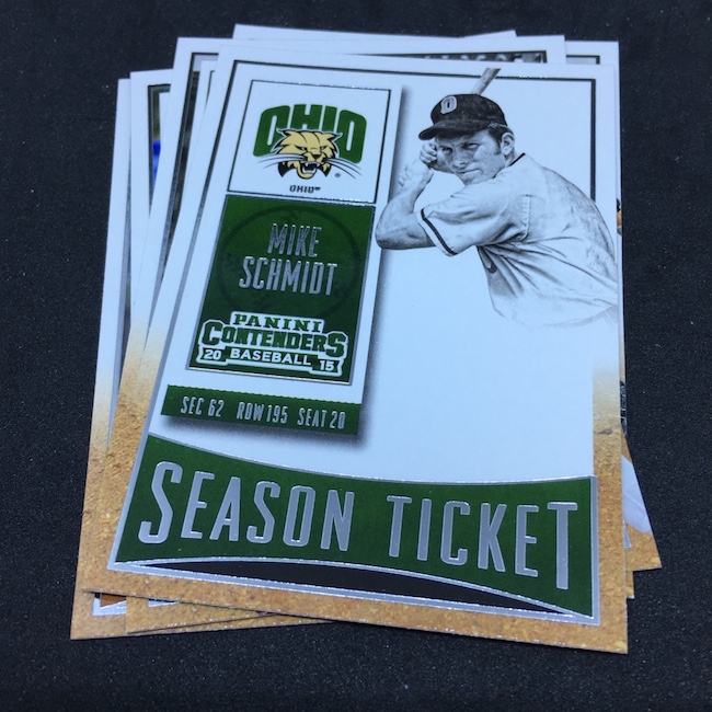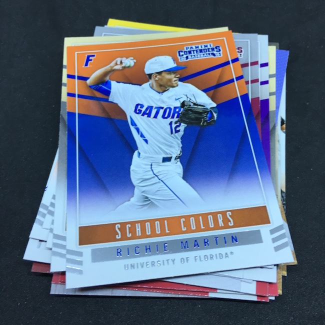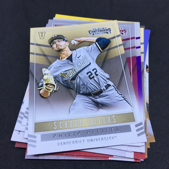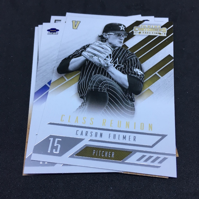 What's Buzz-worthy: Want a bargain-priced break (in the big sale) with some big potential? It's arguably this one as you get a pair of autographed cards in every box and, while there's a deep prospecting checklist, there are some truly big names in this release, too. Among them? Vladimir Guerrero Jr., Austin Riley, Ozzie Albies, Aaron Judge, Andrew Benintendi, Dansby Swanson, Brendan McKay, Yoan Moncada, Christian Pache, Alex Bregman, Mike Soroka, Corey Seager, Rafael Devers, Victor Robles, Kyle Schwarber, Corey Ray, Trea Turner, Matt Chapman, Russell Wilson, Paul Molitor, Kyle Tucker, Walker Buehler and Gleyber Torres to name a few. Did all of them make their way into blasters? No way to know other than rip -- but I'd guess that some of these names are very possible. Typically I've landed a USA Baseball auto in them -- though not in all. ... This release is unique in that it showcases fully licensed college logos and uniforms. The base set cards I landed here weren't the greatest -- and that Mike Schmidt cards shows the limits of vintage college photography -- but I still like this one's design for those players who have a full college package there. In other instances, the ticket box can feel a little empty -- but the checklist here is not. Both of my autos are of players still deep in the minors and still playing but there's no doubt that there's still good potential in these boxes. Had my Austin Smith been an Austin Riley? A+ box.