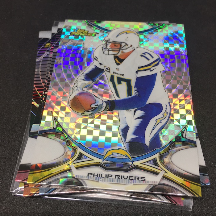What's Buzz-worthy: I almost missed the obvious here but it's something that shows the magic of these repacks that were made for a premium presence out in the retail wild. They are hobby packs -- but that's not the obvious. What I almost missed was the fact that these cards were Black Refractors only found in Hot Boxes -- and those boxes were found only one in every eight cases. (I initially thought this was a brand that was all-Refractor finish but then I looked back at my previous break.) Had I landed a Tom Brady? More than $100 (and higher) in a slab with recent raw eBay sales at $75 -- and he's not alone. Every card here was a parallel save for the two inserts though only the biggest names carry bigger value all the years later as a l0t of cases got ripped. Manning is a few bucks and the Beckham and Rivers cards aren't bad finds ... but it's really just a reminder of what's possible here. Bigger reasons to rip? Autographs, patch autos, printing plates and other rare parallels for Hall of Fame caliber guys as well as a few RCs that aren't as flashy as they once were but still have followings like Todd Gurley, Amari Cooper, Marcus Mariota, Jameis Winston and Tyler Lockett. ... This is a brand where the odds weren't tough to land hits -- 12-pack boxes include at least one rookie patch auto and one autographed jumbo Relic along with at least six rookie inserts. Since there was no retail run for this product, it's all possible here and these are cheap -- I landed mine from the recent Dash Deals wave (already passed) even cheaper than it is at the moment but even now it's not a bad low-risk rip. And, if you like it, there are also boxes still to be found, too.