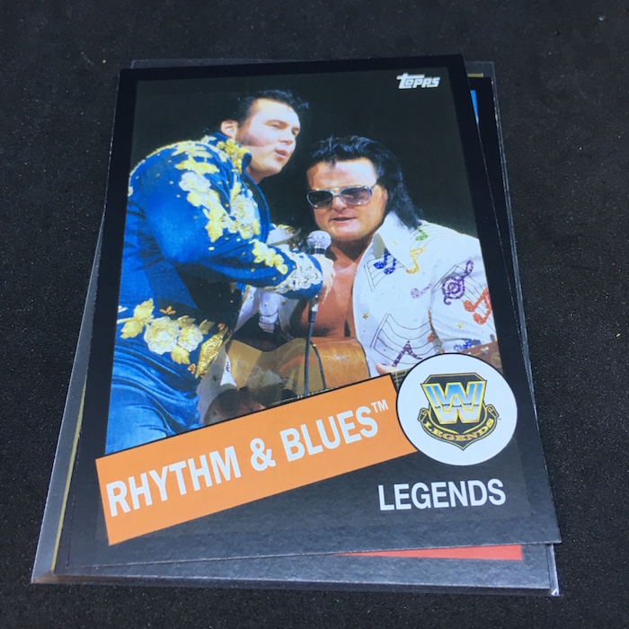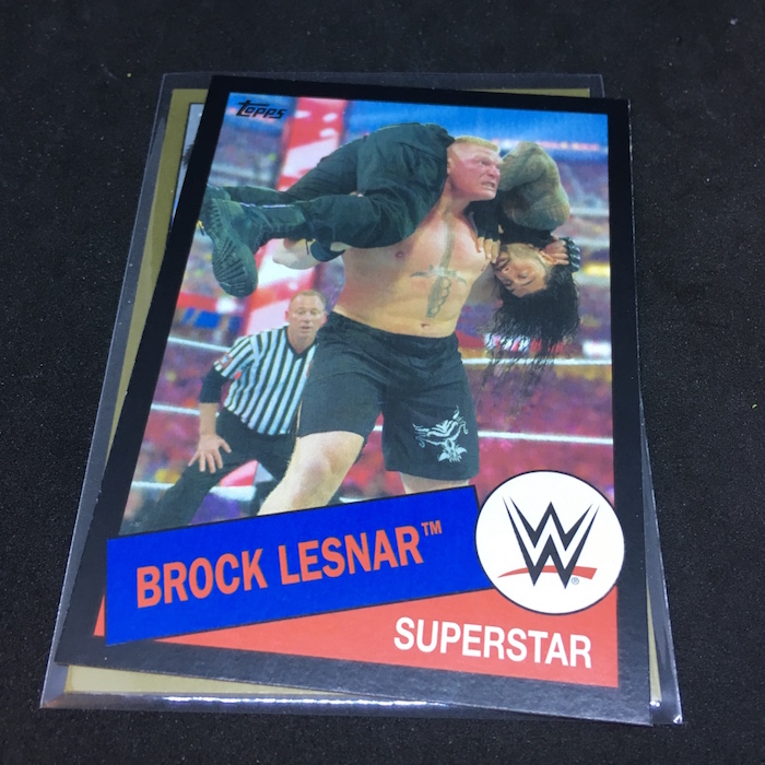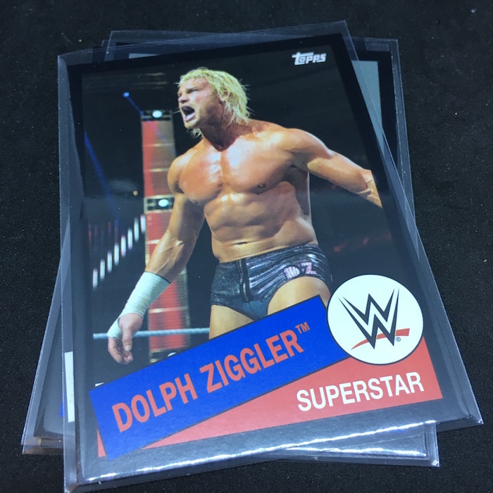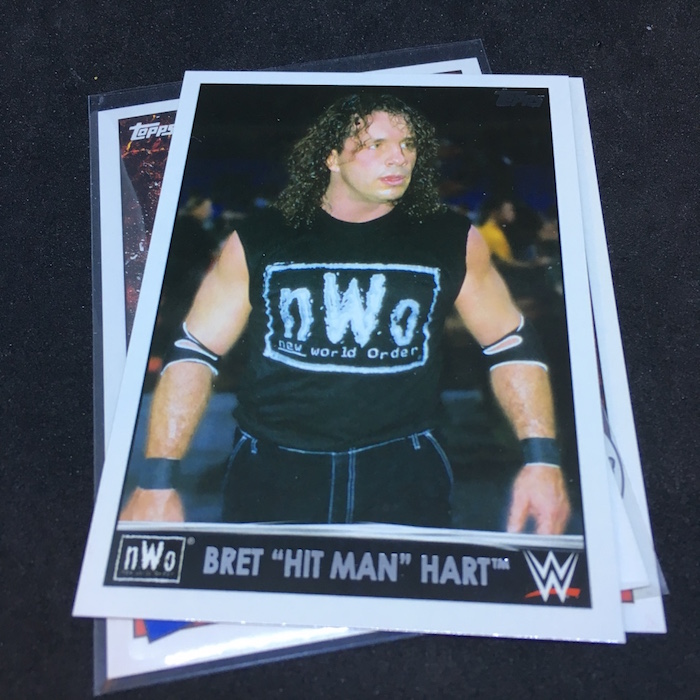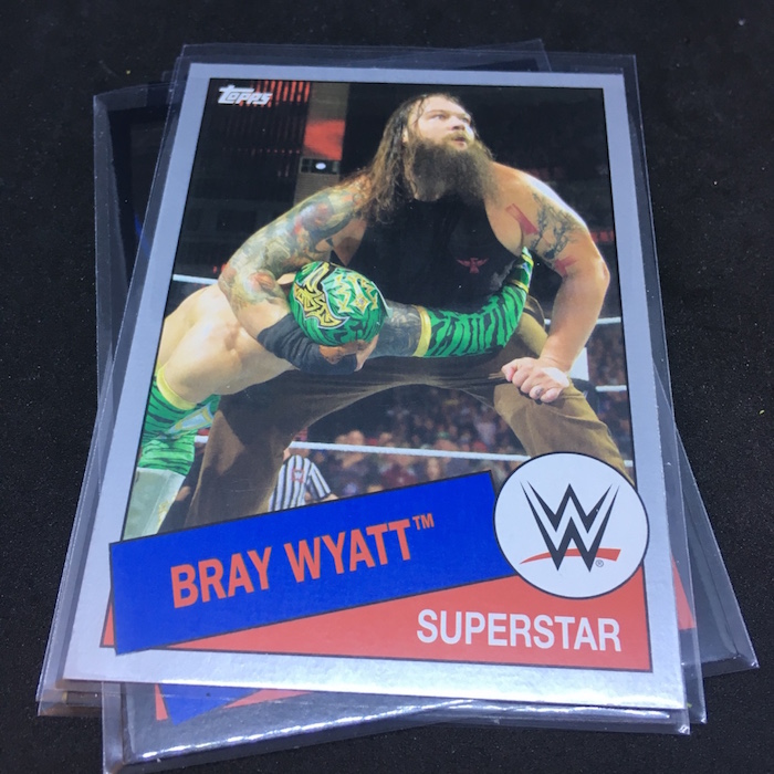 Notables on base cards: Ultimate Warrior, Roddy Piper, Steve Austin, Dusty Rhodes, Eddie Guerrero, D-Generation X, The Four Horsemen, Rocky Johnson, Bruno Sammartino, Edge, Bam Bam Bigelow, Terry Funk, Dory Funk, Jim Ross, Curt Hennig, Tito Santana, Bret Hart, Junkyard Dog, Ricky Steamboat, The Outsiders, Jake Roberts, Rob Van Dam, The New Day, Seth Rollins, Chris Jericho, Kevin Owens, Undertaker, The Rock, Randy Orton, John Cena, Batista, Bray Wyatt, Stardust, Dolph Ziggler, Brock Lesnar, Roman Reigns, Daniel Bryan, Charlotte Flair, Paige, Sasha Banks, Lita, Trish Stratus, Alexa Bliss, Baron Corbin, Sami Zayn, Finn Balor