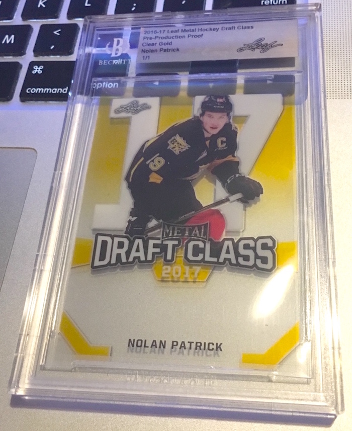 What’s Buzz-worthy: These one-card case-topper bonus packs were less than $7 in the recent Black November sale and Buzz jumped on a pair of them just for fun as it's hard to pass on a slabbed 1/1 card for that price -- and one of these showed how these packs can pay off well, despite there not being any autographs involved. (These are blank-back proofs used in the production of the cards that were later signed.) Patrick, 20, was the second-overall pick in last year's NHL Draft and he played 73 games last season where he had 30 points (13 goals, 17 assists) and through just 22 games this season he had five goals and four assists. Comtois is a 19-year-old prospect taken in the second round last year (50th overall) by the Anaheim Ducks and he's a rookie this season with two goals and five assists in his first 10 games. As for values, some Comtois proofs from this one have sold for as much as $13.50 on eBay (nearly double my pack price) and then Patrick has sold for as much as $35 with asking prices in active auctions for similar Leaf proofs as high as $75. Patrick signed an exclusive deal with Leaf in June 2016 so there's some extra attention there, too. I barely do hockey -- just not my focus -- but this was a fun and simple way to dig in and see what's cooking.