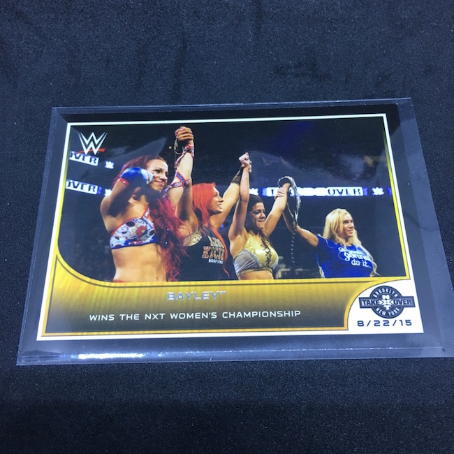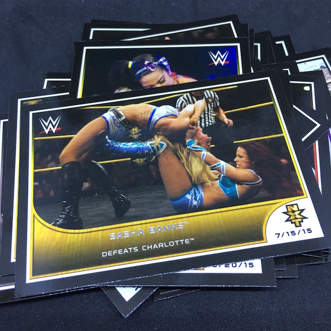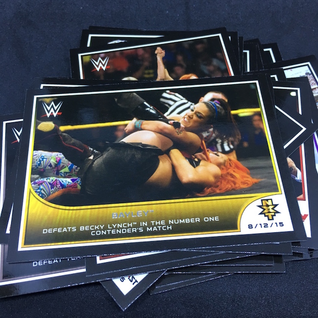 What's Buzz-worthy: If you poked around in the wrestling section of the site, you may have noticed a number of retail boxes up for grabs at about $1 a pack. And, as you can see here, that could be the right kind of price as they can deliver hits -- and sometimes more than one type as this one shows. On paper, the odds aren't good -- at least on the wrapper -- for hits here but out of a handful of boxes I had just one fail to deliver either an autograph, a Relic or a commemorative medallion card. (And more than one of them delivered like this one.) ... This is a highlights set and that immediately creates a few challenges on how these cards might be received by collectors, but there are a ton of moments captured here from a time were NXT might have been at its character-developing peak with an influx of new talent just breaking into the top ranks of WWE and getting a good look on cardboard here. The only drawback? Thin stock and black borders -- they can easily come out of packs with minor tweaks that can derail your Gem Mint 10 dreams if you're crazy enough to slab key moments -- I am. Autographs are possible here -- and they are on-card sigs -- and it's a list that includes Dusty Rhodes, Roddy Piper, John Cena, Sting, Pat Patterson, Michael Hayes, Bayley, Kevin Von Erich, Gerald Brisco, Charlotte, Dory Funk Jr., Terry Funk, Lana, Sasha Banks, Becky Lynch and Ric Flair. I will be ripping more of this one at some point.