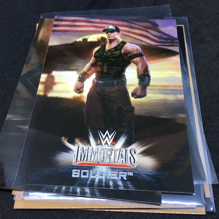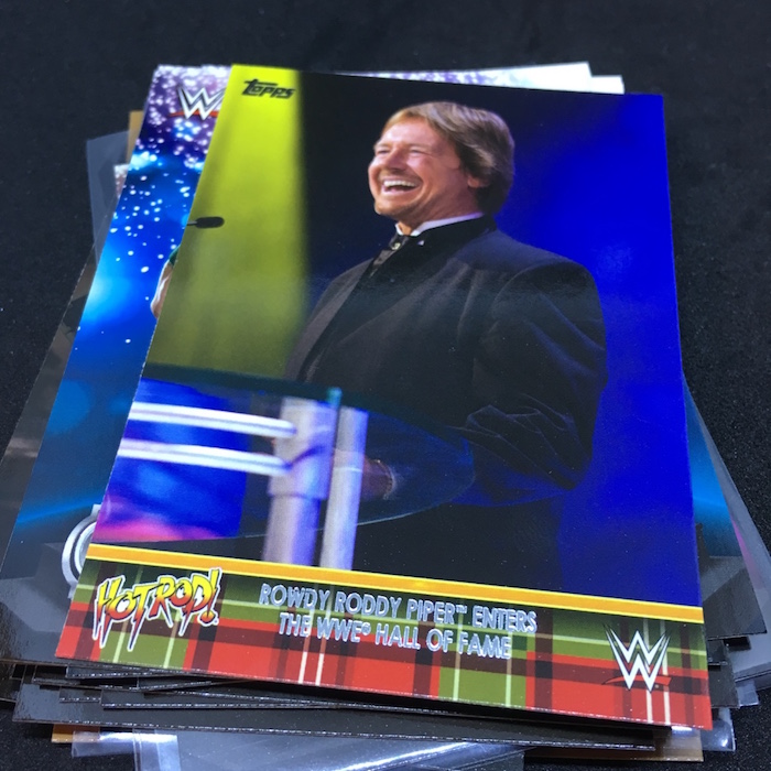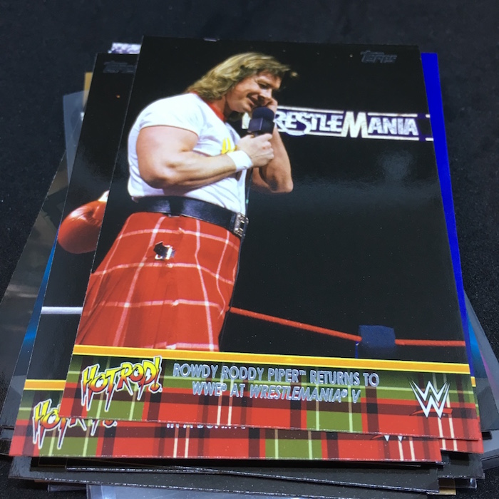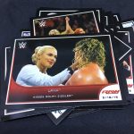 Notables on base cards: The Four Horsewomen, Roddy Piper, Dusty Rhodes, Sting, Ric Flair, Triple H, Bray Wyatt, Roman Reigns, Brock Lesnar, Seth Rollins, John Cena, Kevin Owens, Undertaker, Braun Strowman, Sasha Banks Charlotte, Bayley, Alexa Bliss, Ric Flair, The New Day, Paige, Becky Lynch