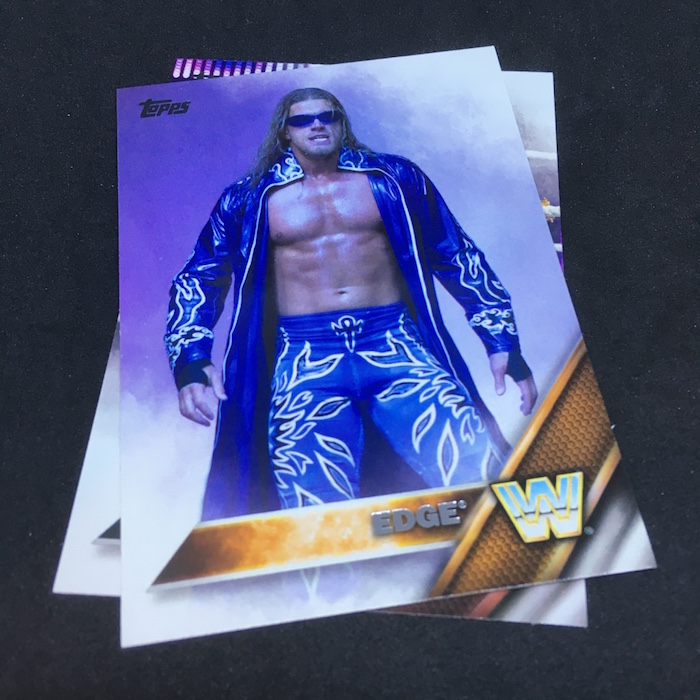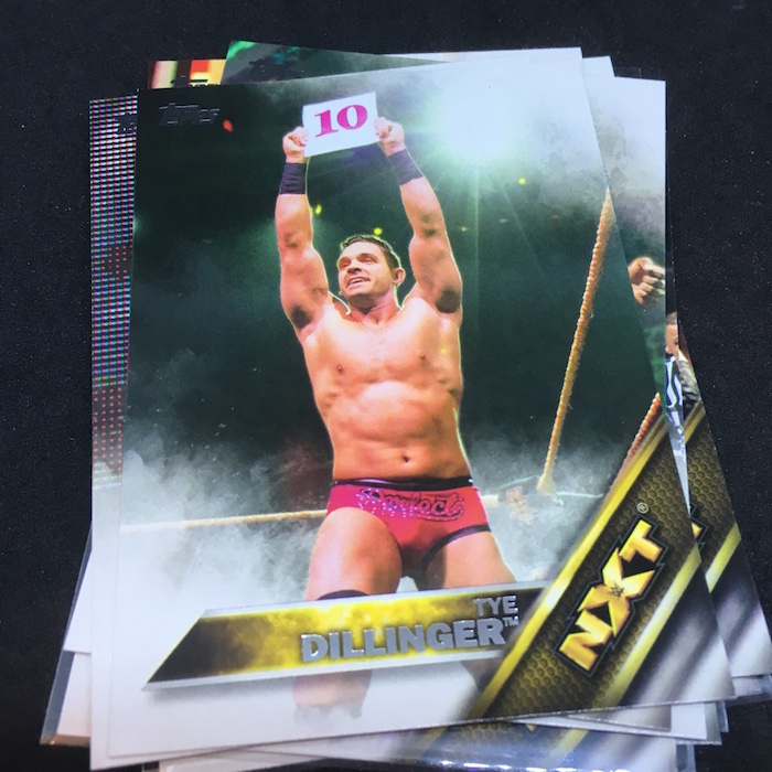 What's Buzz-worthy: With BuzzMania4 tomorrow here's one more box that didn't make the cut -- a decent box, actually, but not flashy enough for the big show. The NXT cards here are a one-per-pack highlight with some good names and some debuts, while the run of base cards here was oddly heavy on WWE Hall of Famers and other past greats -- a lot heavier than normal. (Too heavy.) These boxes don't have as much big-hit potential as there are not autographs -- they came beginning after this year with autographed Relics a long-shot find but there are other possible pulls so I grabbed a couple at suggested retail price. For more thoughts on this one, check out my other breaks ... look for a lot more big-hit stuff in tomorrow's marathon.
