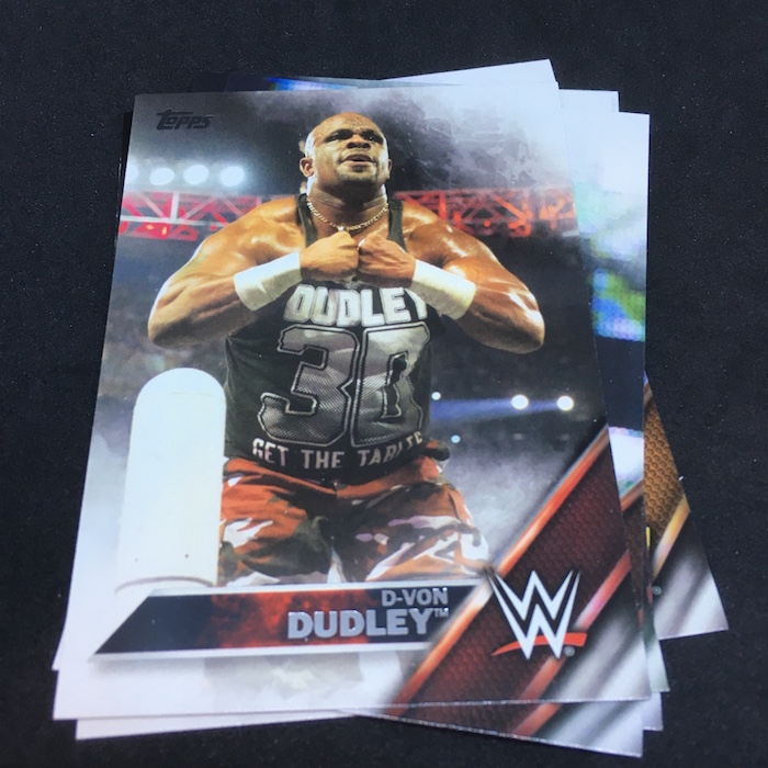 Notables on base cards: Sasha Banks, Edge, Naomi, Ric Flair, Trish Stratus, Kevin Owens, D-Von Dudley, Bubba Ray Dudley, Elizabeth, Randy Savage, Sherri Martel, Ultimate Warrior, Kerry Von Erich, Davey Boy Smith