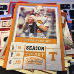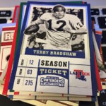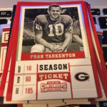 Notable players found on base cards – Peyton Manning, Troy Aikman, John Elway, Tom Brady, Eli Manning, Ben Roethlisberger, Jerry Rice, Terry Bradshaw, Andrew Luck, LaDainian Tomlinson, Dan Marino, Rob Gronkowski, Fran Tarkenton, Russell Wilson, J.J. Watt, Julio Jones, Brett Favre, Aaron Rodgers