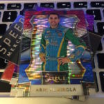What's Buzz-worthy: As said in a past break here, this brand is a new one to the NASCAR lineup and it's basically a deluxe version of Prizm. ... This design is definitely a familiar one in its feel, so as long as you're comfortable with it and its colorful Pulsar parallels you'll probably be comfortable ripping into this one. This particular box included one of the tiered short-prints, one insert and then the typically found parallels and the hit. For the price, it seemed like it delivered enough -- it just wasn't that flashy -- and this box, compared to a past blaster here, shows that these don't always deliver with the same consistency. That could mean some stronger boxes out there than others.