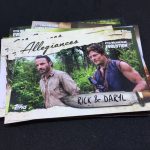 What's Buzz-worthy: Another bargain bin blast from the past delivers a card that's only found in this format, a Negan bat Relic (unfortunately not a screen-used prop Relic). There are pretty good pulls to be had in these boxes so they are worth their price if you find them on the cheap. Hobby boxes aren't all that pricey, either, and those guarantee autographs every time. Basic autographs are one in 12 blasters here -- and that could be easier than that with more than just standard autos in the mix. I had good luck opening these back when they arrived -- they seemed to over-deliver -- so they're worth a look. ... The Allegiances inserts are also only found in Walmart boxes as are the Walker Relics so if you're looking to complete master sets, these also have advantages. These boxes break down very consistently in terms of their volume, meaning you might be able to put things together for the basics with a box or two.