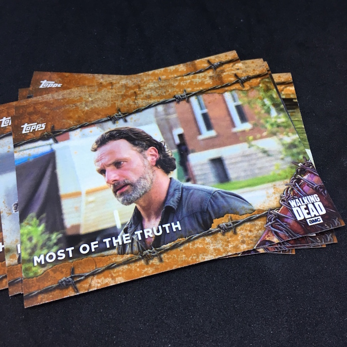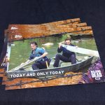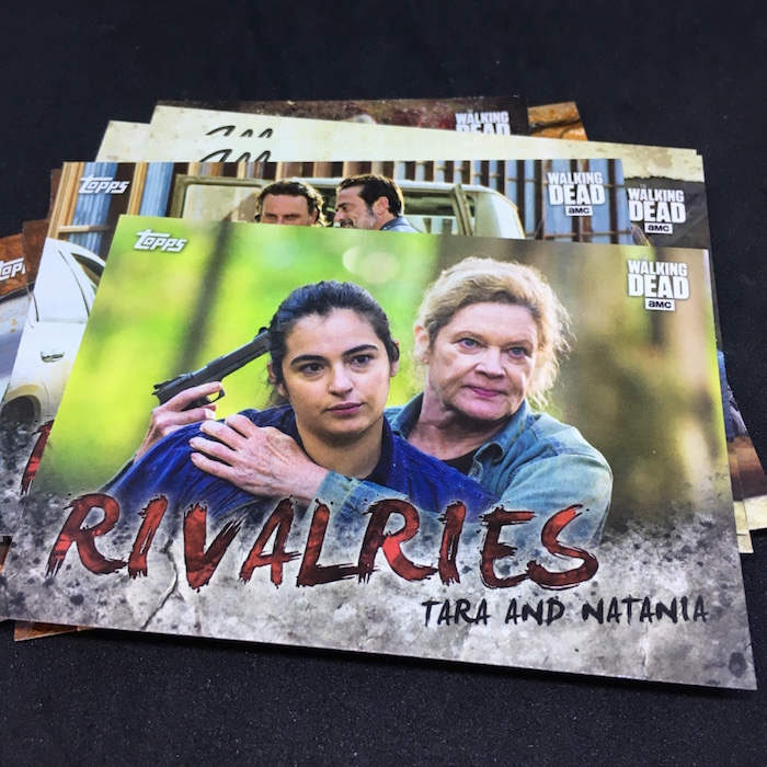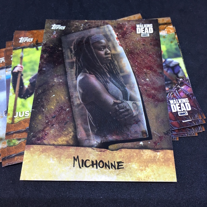 What's Buzz-worthy: With The Walking Dead cards on sale right now right here, I figured now was the time to clear out my back stock of busted blasters for this one as these are too cheap to not rip because they can include cards only found here that can really surprise you -- and there are all types of hits possible, too. This box didn't include any serial-numbered cards -- which actually has not been the norm for me as my last had three -- but I had to grab it as I like the release after pulling one of these cards. That's just one of the card types only found here. ... Odds on these retail boxes are actually quite good for other stuff, too, with autographs, sketch cards, printing plates and Relics of many types in the mix. You get a hit every time and one numbered parallel of some type isn't all that unusual here.