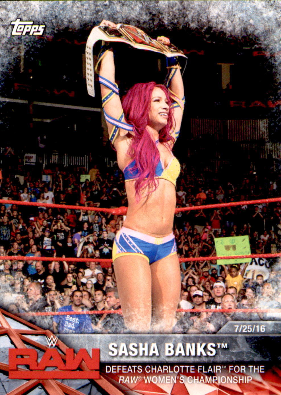 Notables on base cards: Alexa Bliss, Asuka, Carmella, Eve Torres, Mandy Rose, Stephanie McMahon, Ruby Riot, Mandy Rose, Elizabeth, Ember Moon, Kelly Kelly, Sasha Banks, Brie Bella, Mickie James, Beth Phoenix, Becky Lynch, Cathy Kelley, Bayley, Charlotte Flair, Trish Stratus, Sherri Martel, Nikki Bella, Lita, Liv Morgan, Torrie Wilson, Lana, Maryse