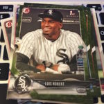 Notables on base/prospect cards – Vladimir Guerrero Jr., Jake Burger, Gleyber Torres, Eloy Jimenez, Luis Robert, Pete Alonso, A.J. Puk, Nick Senzel, Jo Adell, Nick Gordon, Kyle Wright, Cristian Pache, D.J. Peters, Dansby Swanson, Anthony Rizzo, Kris Bryant, Gary Sanchez, Carlos Correa, Buster Posey, Manny Machado, Albert Pujols, Andrew Benintendi