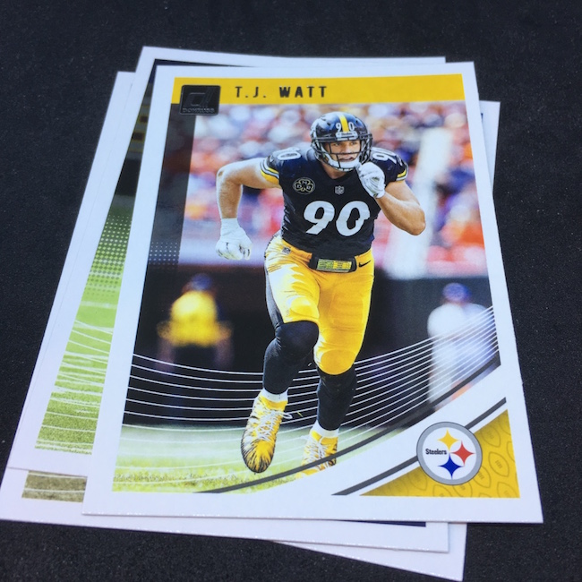 Notables on base cards – Barry Sanders, Carson Wentz, Brian Urlacher, Marcus Mariota, T.J. Watt, J.J. Watt, Derek Carr