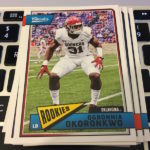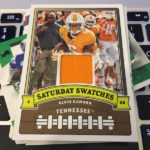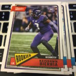 What's Buzz-worthy: This one was one of my favorites two years ago and was an occasional go-to last year, though not as rabidly because blasters didn't guarantee anything. This year they do -- a player-worn college jersey card in every box that's not found anywhere else. Two drawbacks here? White card stock that pushes this one from more of a 1980s feel to an early 1990s one -- but with a semi-1980s design -- and far fewer Rookie Cards. You get three RCs per blaster this year vs. one (and sometimes more) per pack last year. You also get far fewer inserts, too, with them falling at about half as many as last year. That means more base cards and that's not that bad considering how the checklist here is loaded with past and present stars -- but that also hurts the value return here if you're worried about that. It also puts a lot more of the focus on the memorabilia card and if your box isn't as strong there, it will burn a little. This one included an Alvin Kamara -- so it's a good one this time. Over on the hobby side, you'll find a lot more interesting and new inclusions that help change this one dramatically but they're not here. If I bust a hobby box at some point, I'll dig in about those then.