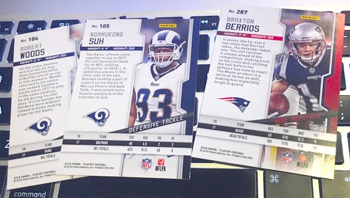 Based on this pack, the Los Angeles Rams win. Why? There were two Rams (Robert Woods, Ndamukong Suh) vs. just one Patriot (Braxton Berrios).