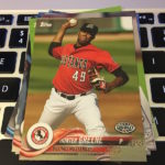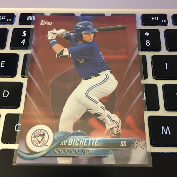 Base cards of note – Erik The Peanut Guy, Todd "Parney" Parnell, Bo Bichette, Ronald Acuna, Michael Kopech, Vladimir Guerrero Jr., MacKenzie Gore, Hunter Greene, Adam Haseley, Gleyber Torres, Jo Adell, Austin Beck, Brendan McKay, Jake Burger, Pavin Smith, Cristian Pache, Nick Senzel, Mike Soroka, Kacy Clemens, Austin Riley, Dylan Cozens, Mickey Moniak, Juan Soto, Fernando Tatis Jr., Tyler O'Neill, Yu-Cheng Chang
