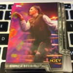 What's Buzz-worthy: This one is available for the first time via hobby boxes this year (one autograph and a second hit every time) but these blasters can also clearly carry some punch. The odds on this auto? One in 154 boxes so that's not the norm -- but it was my first rip of this one so you see it here first. Walmart blasters include exclusive Women's Champions cards, which are nicely done showcases of past and present champs at all levels, while the Memorable cards are also past looks at highlight moments. The base set feels dramatically improved this year and it was relatively strong in the past. Also apparently exclusives in Walmart blasters this year are autographed kiss cards and autographed shirt Relic booklets (one in 1,002 boxes). The drawback? Parallel cards are essentially non-existent here as they start at one in 109 packs and are even harder for the easiest parallels of the inserts. (One in 453 packs for a Silver Royal Rumble parallel.) You can land printing plates (one in 386 boxes), kiss cards, shirt Relics, mat Relics and commemorative belts. I won't disclose how many I've ripped so far but autographed are flowing much easier for me than last year (which was rough), while a small base set means you'll land Ronda Rousey's Rookie Card in roughly every other box. That won't help values over time, but it helps people get them if they want them more easily but the parallels should stay strong. The card stock is standard but not heavy here and this box's corners show it on the left bottom of the base cards but that could just be from how the box was handled before it got to me. This release is blasters and hobby boxes only this year, which is a good thing as last year's hanger boxes and loose packs had long odds that didn't seem all that reasonable. This year? This looks much better and I'm off to a strong start. It's worth a rip.