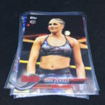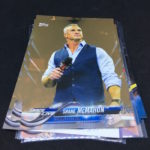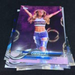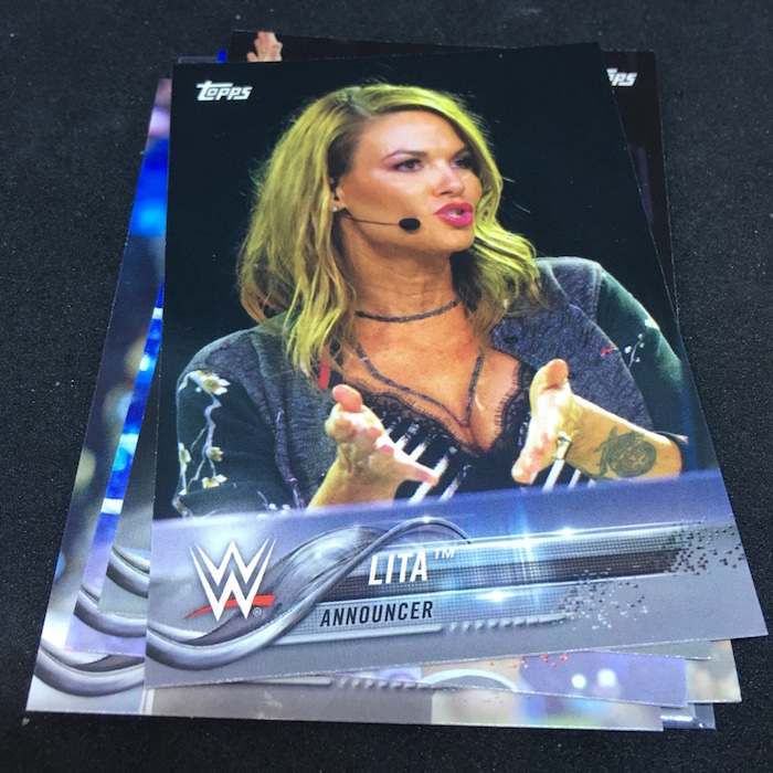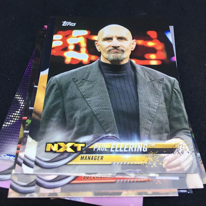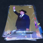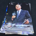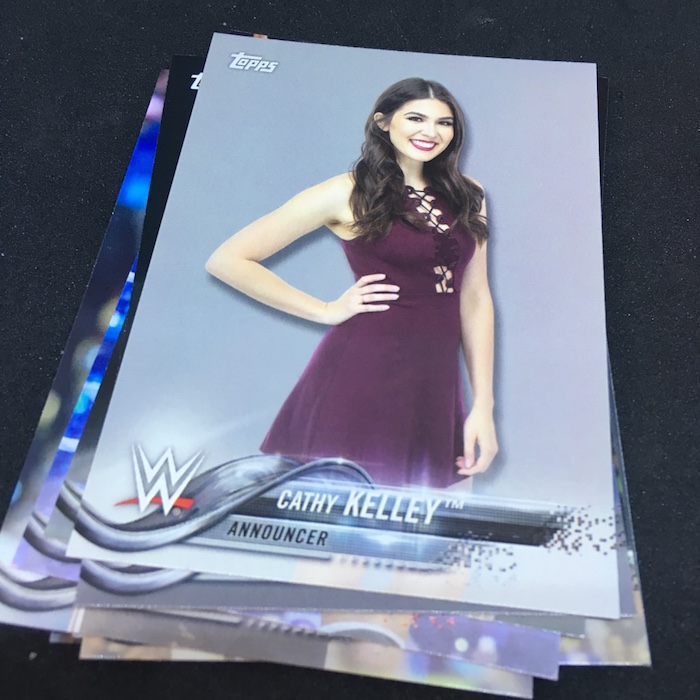 Notables on base cards: Mr. McMahon, Shane McMahon, Stephanie McMahon, Aleister Black, Kevin Owens, Undertaker, Gene Okerlund, The Rock, Triple H, John Cena, Peyton Royce, Billie Kay, Lita, Cathy Kelly, Kayla Braxton, Carmella, Maryse, Ember Moon, Charlotte Flair, Zelina Vega, Lana, Mickie James, Nia Jax, Natalya, Maria Kanellis, Jerry Lawler, Big E, Xavier Woods, Kofi Kingston, Elias, Paul Ellering, Drew McIntyre, A.J. Styles, Kurt Angle, Johnny Gargano, Jim Ross, Tommaso Ciampa