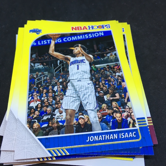What's Buzz-worthy: Struck out hunting Prizm and can't wait for a pick-and-click delivery from here to rip more? Then you might want to hit a retail chain that's seemingly everywhere but not heavily known for a cardboard presence ... but one that has some exclusives that can be money-makers for you if you have some luck. These $1 five-card packs only sold at Dollar Tree stores include one Yellow parallel card per pack. That means you have a one in 300 shot at a Yellow standard Zion Williamson Rookie Card -- it's pushed $100 among eBay completed auctions and his Tribute subset has pushed $70 among completed sales. Meanwhile, asking prices for the few active auctions for those cards are higher. I went 0-for-everything here on the Zion front -- not even the regular one can be mine from a pack -- and my streak of 2019-20 NBA packs ripped (all brands) is now at 108 without seeing a single card for the biggest newcomer in the hobby today. (But enough about me.) I'd think that these will likely be the rarest parallels of the year for standard Hoops and could be huge longer-term sleepers for Rookie Card parallels like Williamson and top stars. This one wasn't the greatest break -- Giannis Antetokounmpo and Ben Simmons are probably my best parallels here -- but for $18 there could have been some pretty solid returns had I pulled some names on a hot streak.
