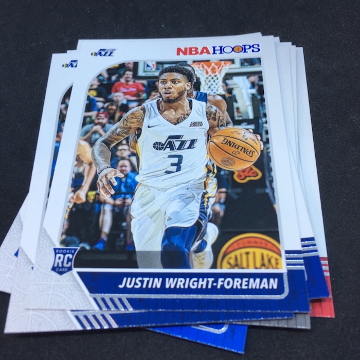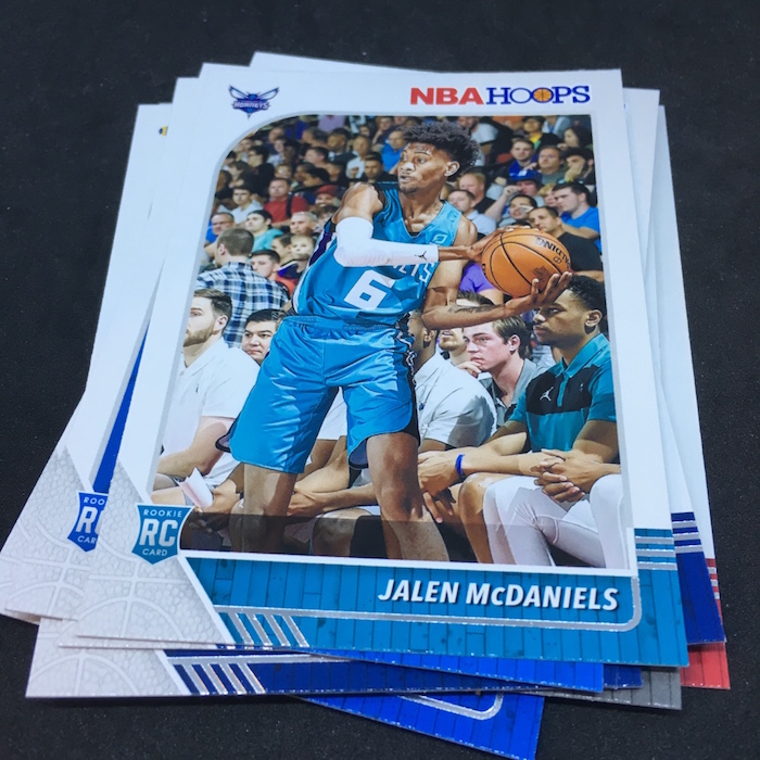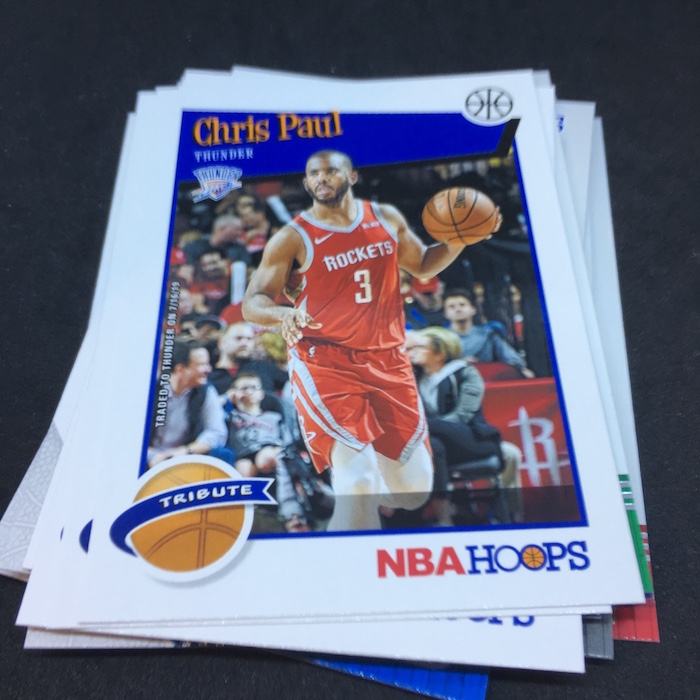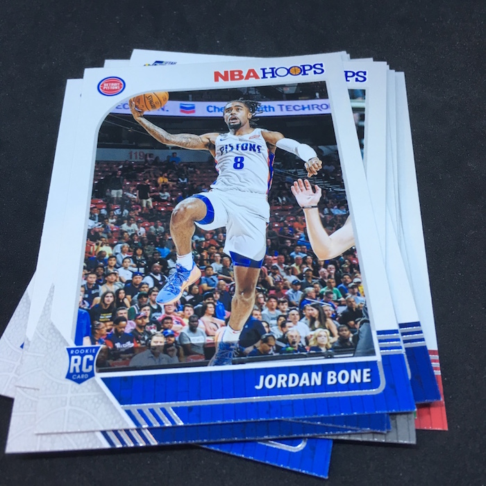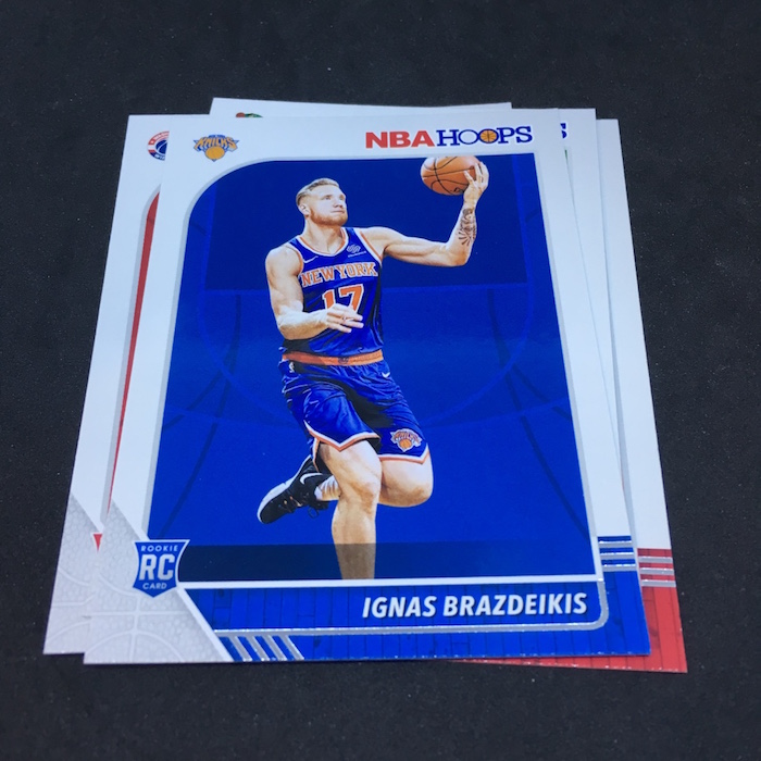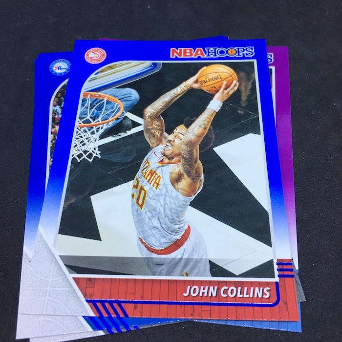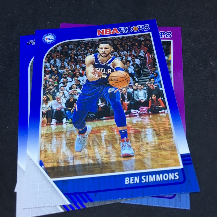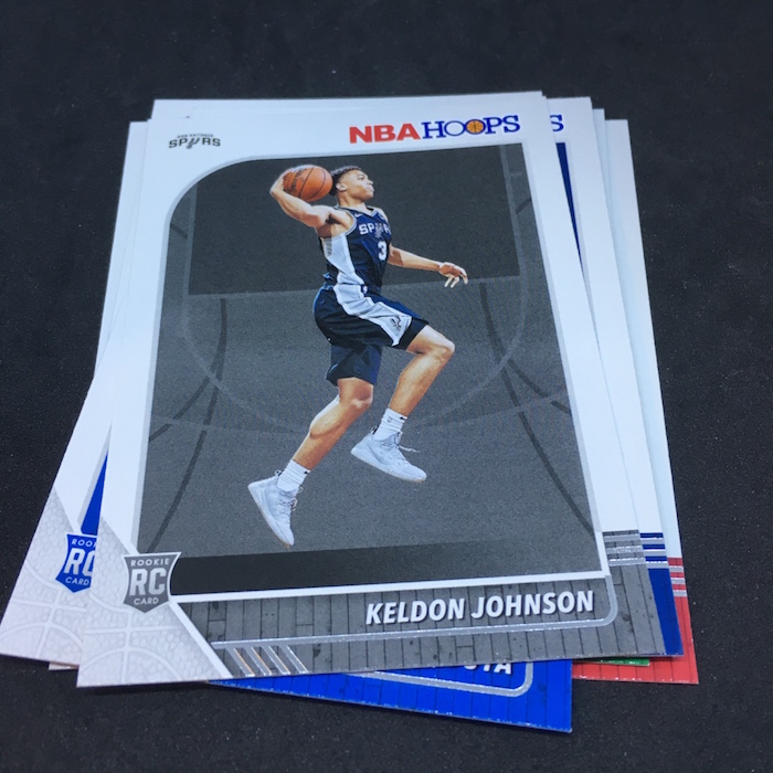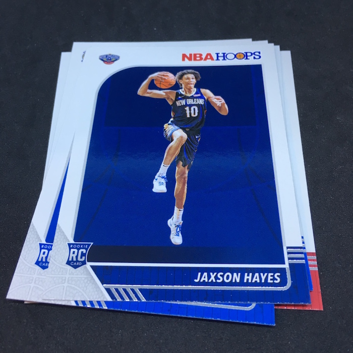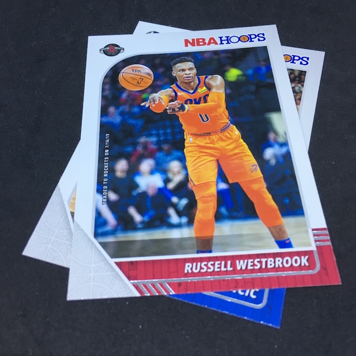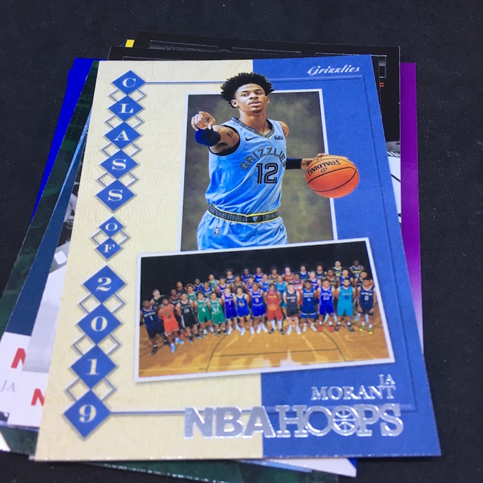 What's Buzz-worthy: NBA Hoops isn't a high-end brand but the NBA Rookie Card arrival of Zion Williamson might make you think it's stepped up a bit. There was no Zion in this box, my first of the year, but it did include a new other high draft picks and some more than once. The basic volume here was pretty much identical to last year and the design for the base cards has a very similar feel but perhaps with a slicker, more Prestige-like at times, design. I got nearly twice as many RCs as I did in my last blaster last year so if that holds up across the board you will get even more shots at Williamson this year -- and that will lead to more big boxes. He's also got plenty of insert presence and he's name-dropped among the autograph tout on the side of the box so ... he should be possible here to some degree. You get an autograph or a memorabilia card in every box and the Red and Blue parallels are only found in blasters -- likely Target- and Walmart-based. This one was from Walmart and had Blue cards -- though the Reds are serial-numbered to only 75 copies. Some of the memorabilia cards in this one have prime parallels limited to only 25, while it looks like the Great SIGnificance autos are the ones to be found here and that's a 100-card set that includes rookies like Williamson as well as veterans and Hall of Famers. It seems heaviest on the rookies and the old-timers, which is good. The feel of Hoops is as fundamental as Tim Duncan was in the paint but that's part of its appeal. One thing that's held over from recent years? The card backs are only in black ink -- and I kind of wished they noted what pick a guy was taken at in the draft along with noting the year. It's basic on those backs but they include a lot more than many other releases. That point, along with a deep set of 300 cards makes it one for traditional or even oldschool colors as well as the newcomers chasing the new RCs. Hobby will guarantee you ink and a lot more -- so that route is definitely best. One thing to look for this year? The Holiday version appears to be on its way -- I didn't see any in the wild but I know they are coming. You'll probably see some of those here once they arrive.